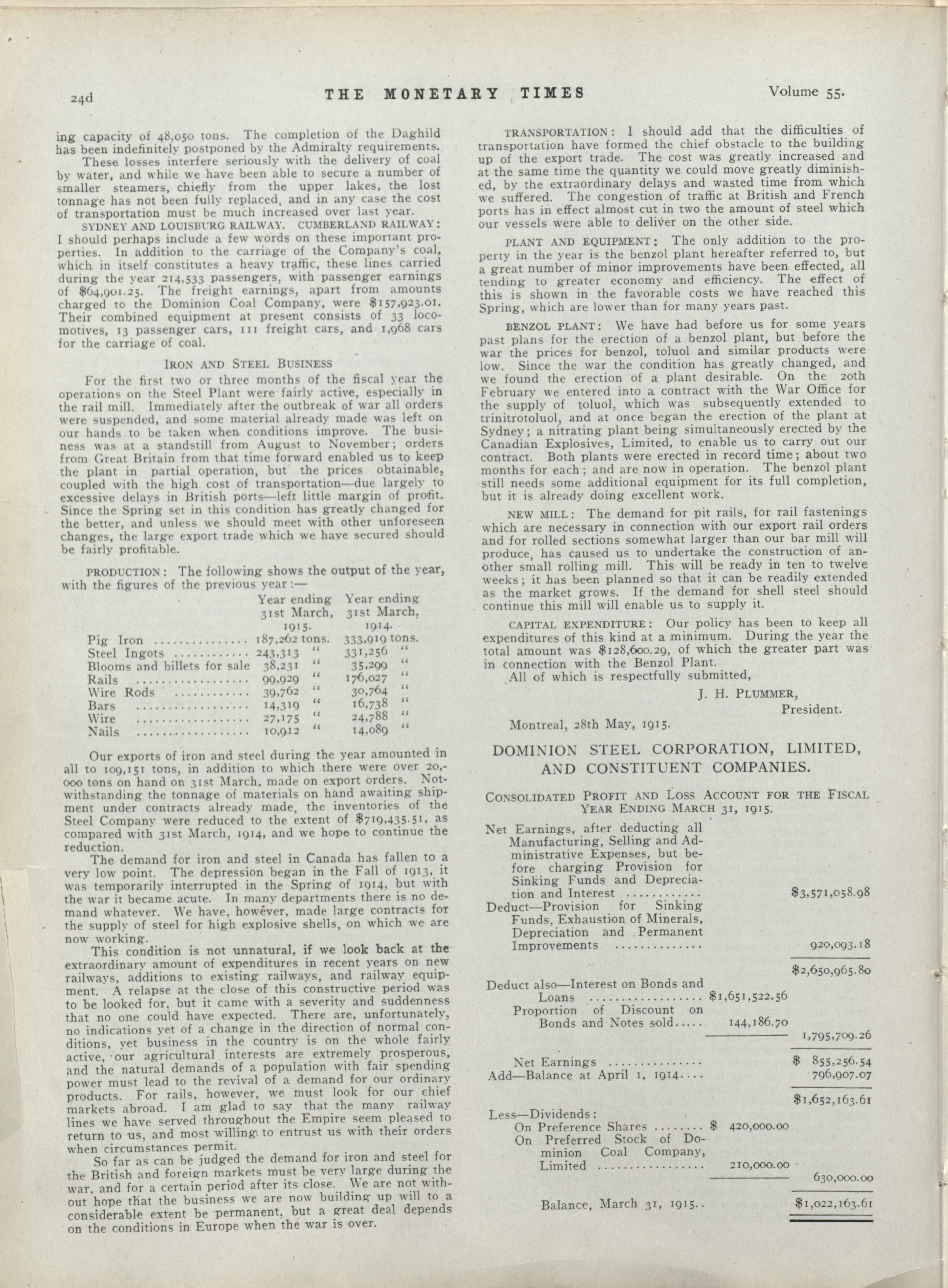 - The Monetary Times, trade review and insurance chronicle. : Volume 55 No. 1 (July 2, 1915)