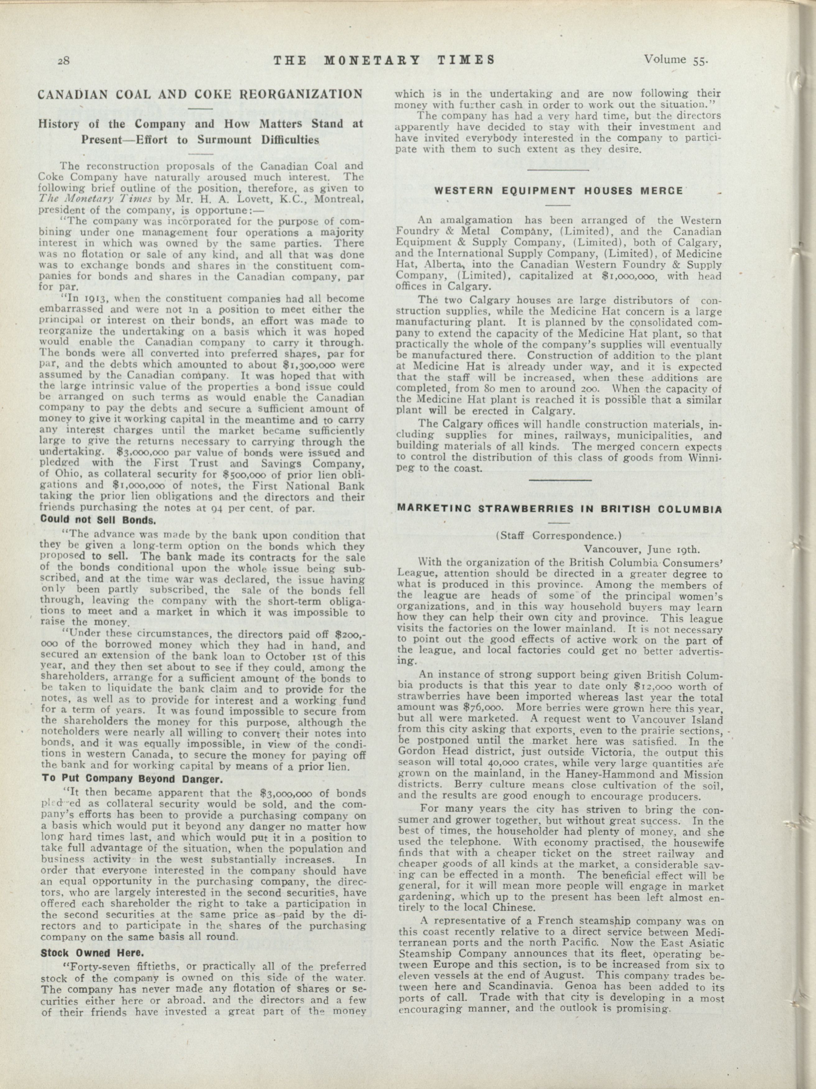The Monetary Times, trade review and insurance chronicle. : Volume 55 No. 1 (July 2, 1915)