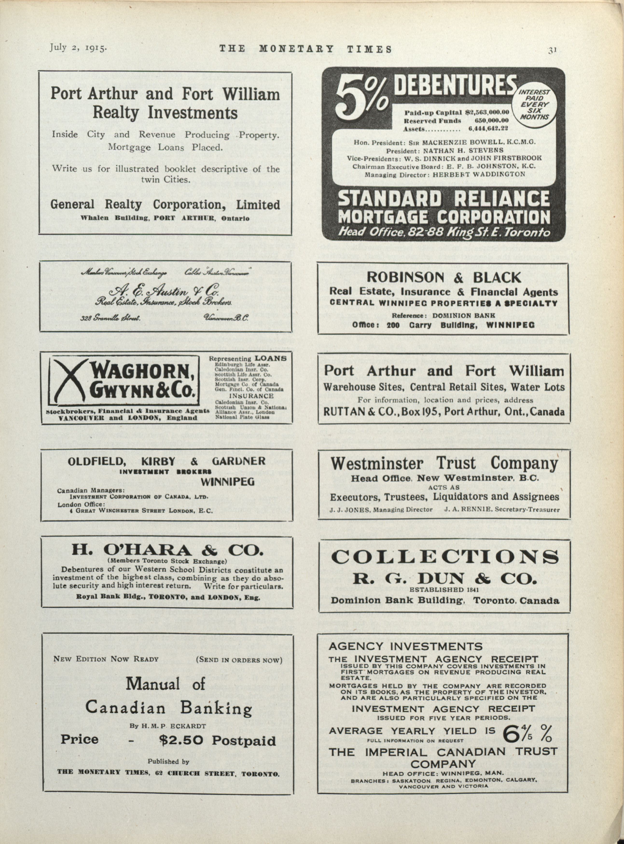 Aide Toronto : The Monetary Times Printing Company of Canada, Limited, [1915]; 64 images avec recherche en texte intégral