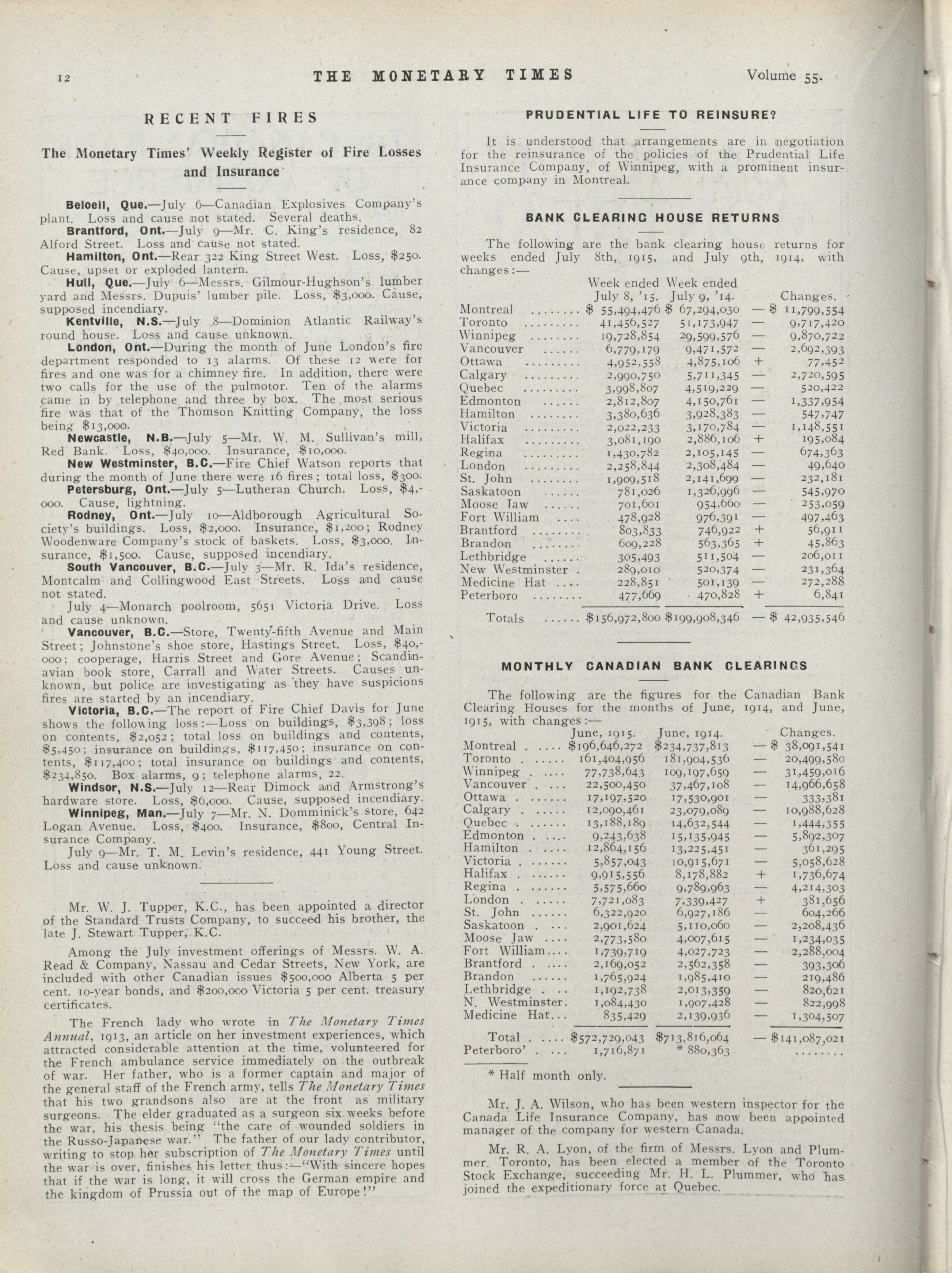 The monetary times, trade review and insurance chronicle : Volume 55 No. 3 (July 16, 1915)