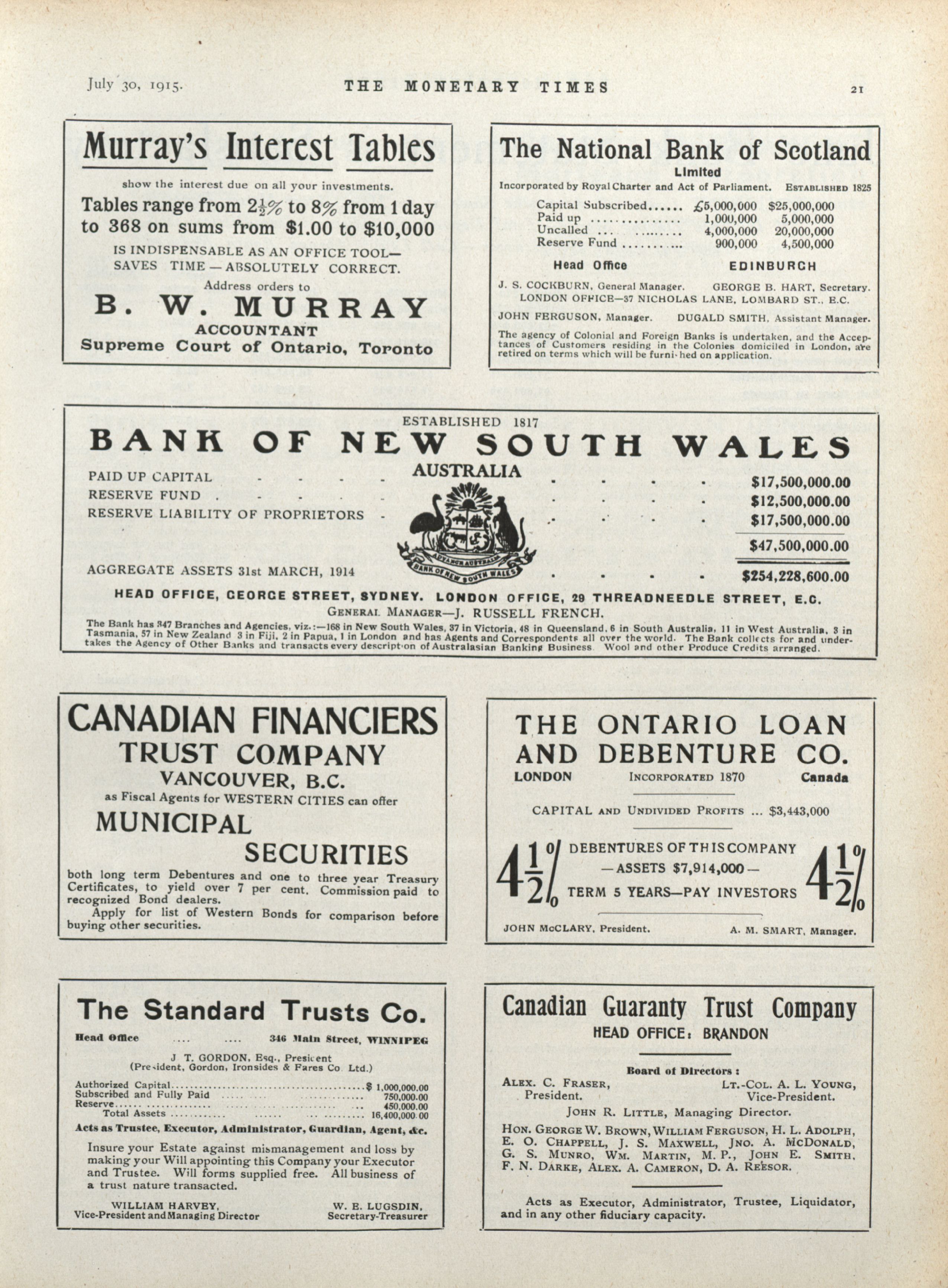 The Monetary Times, trade review and insurance chronicle. : Volume 55 No. 5 (July 30, 1915)