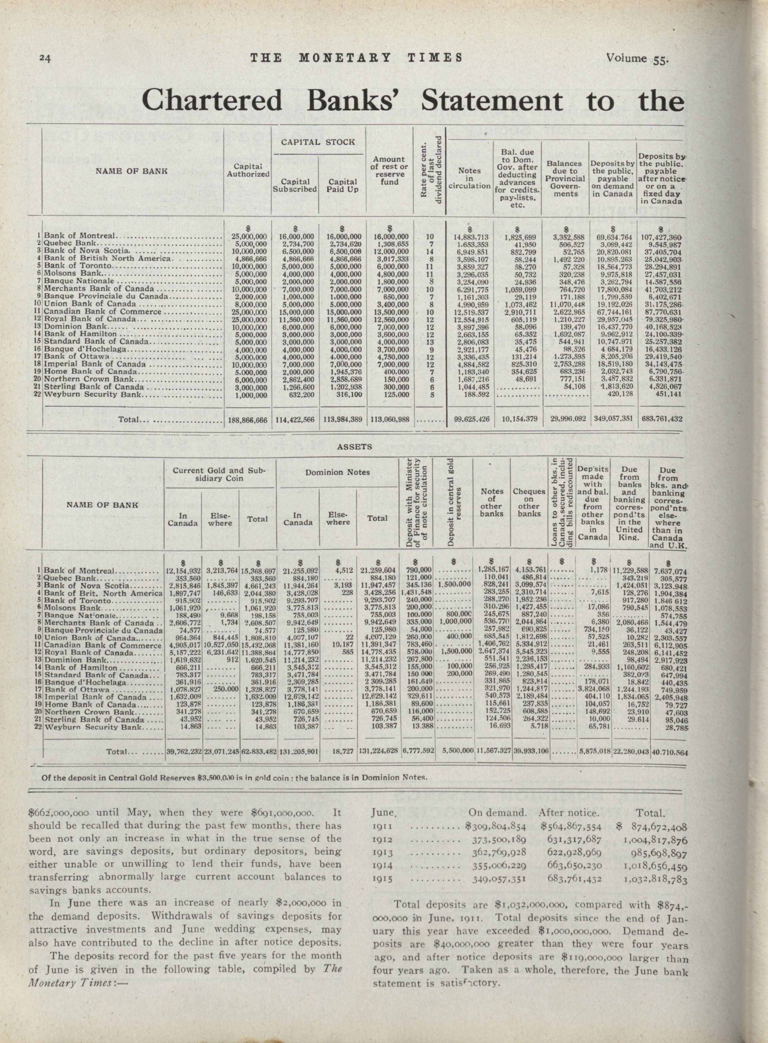 The Monetary Times, trade review and insurance chronicle. : Volume 55 No. 5 (July 30, 1915)