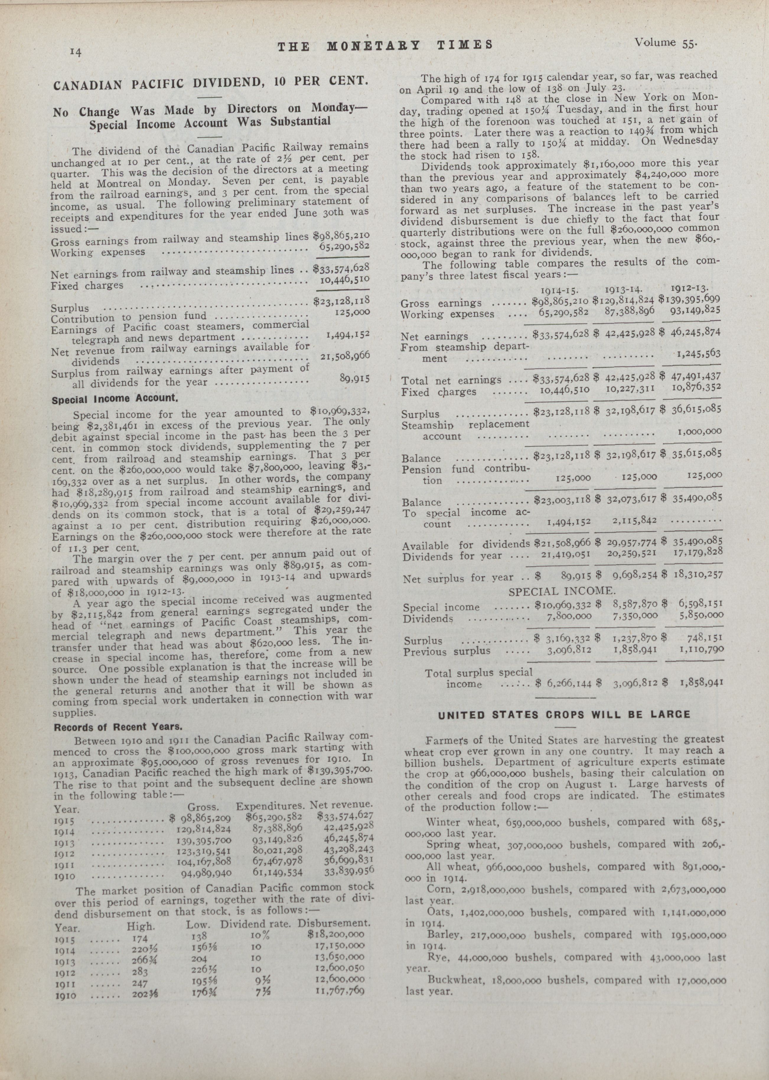 The monetary times, trade review and insurance chronicle : Volume 55 No. 7 (August 13, 1915)