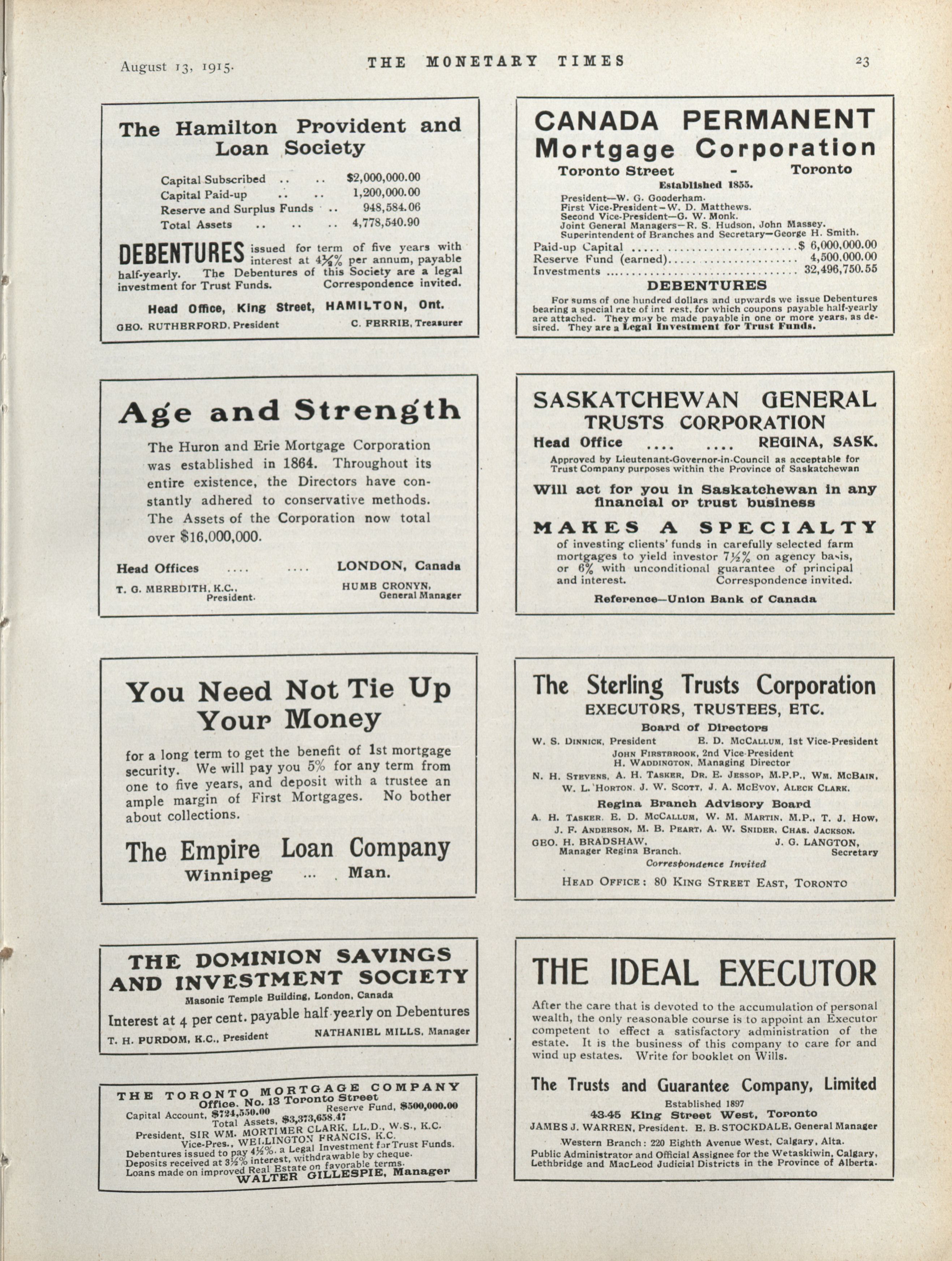 The monetary times, trade review and insurance chronicle : Volume 55 No. 7 (August 13, 1915)