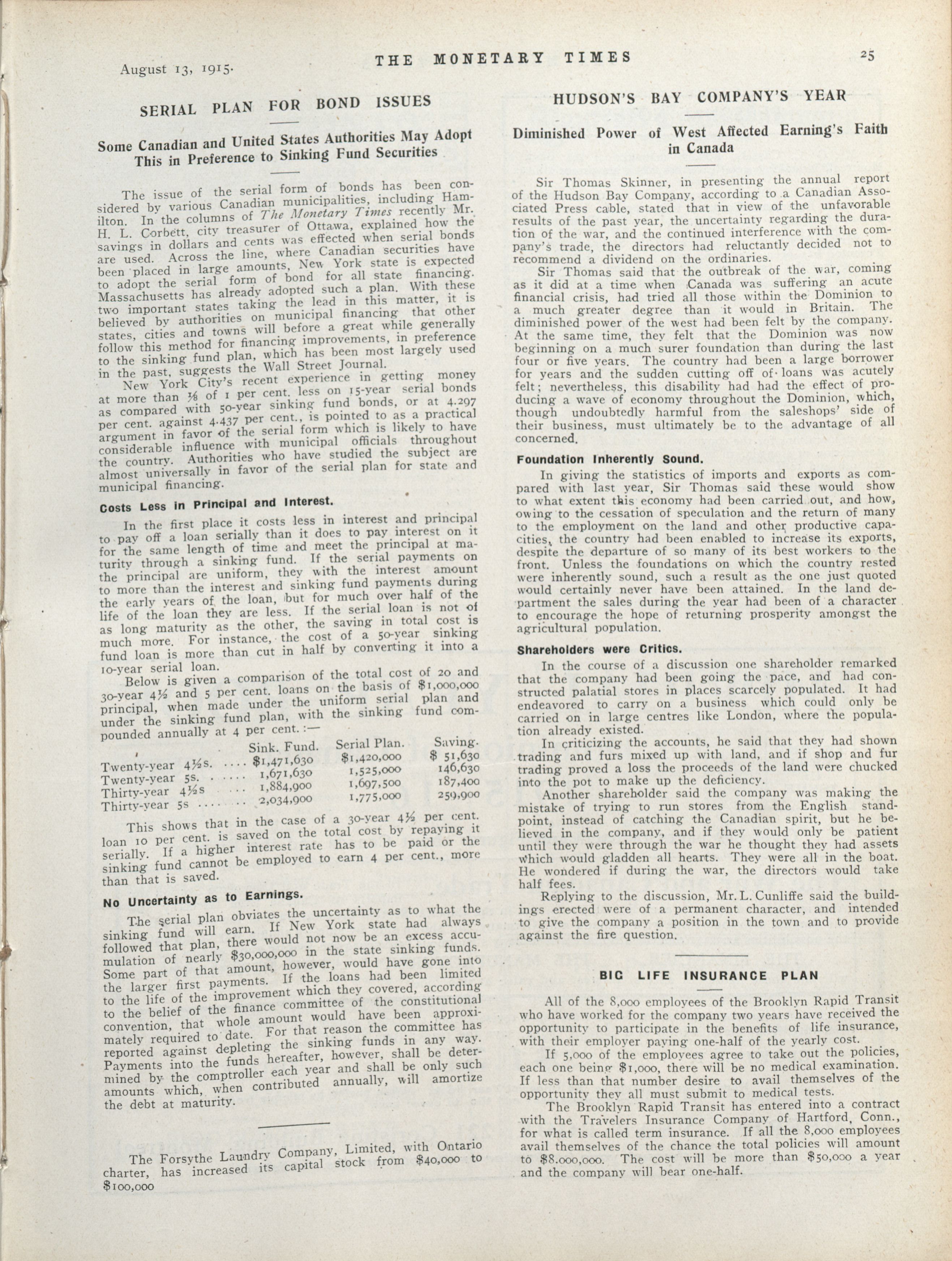 The monetary times, trade review and insurance chronicle : Volume 55 No. 7 (August 13, 1915)