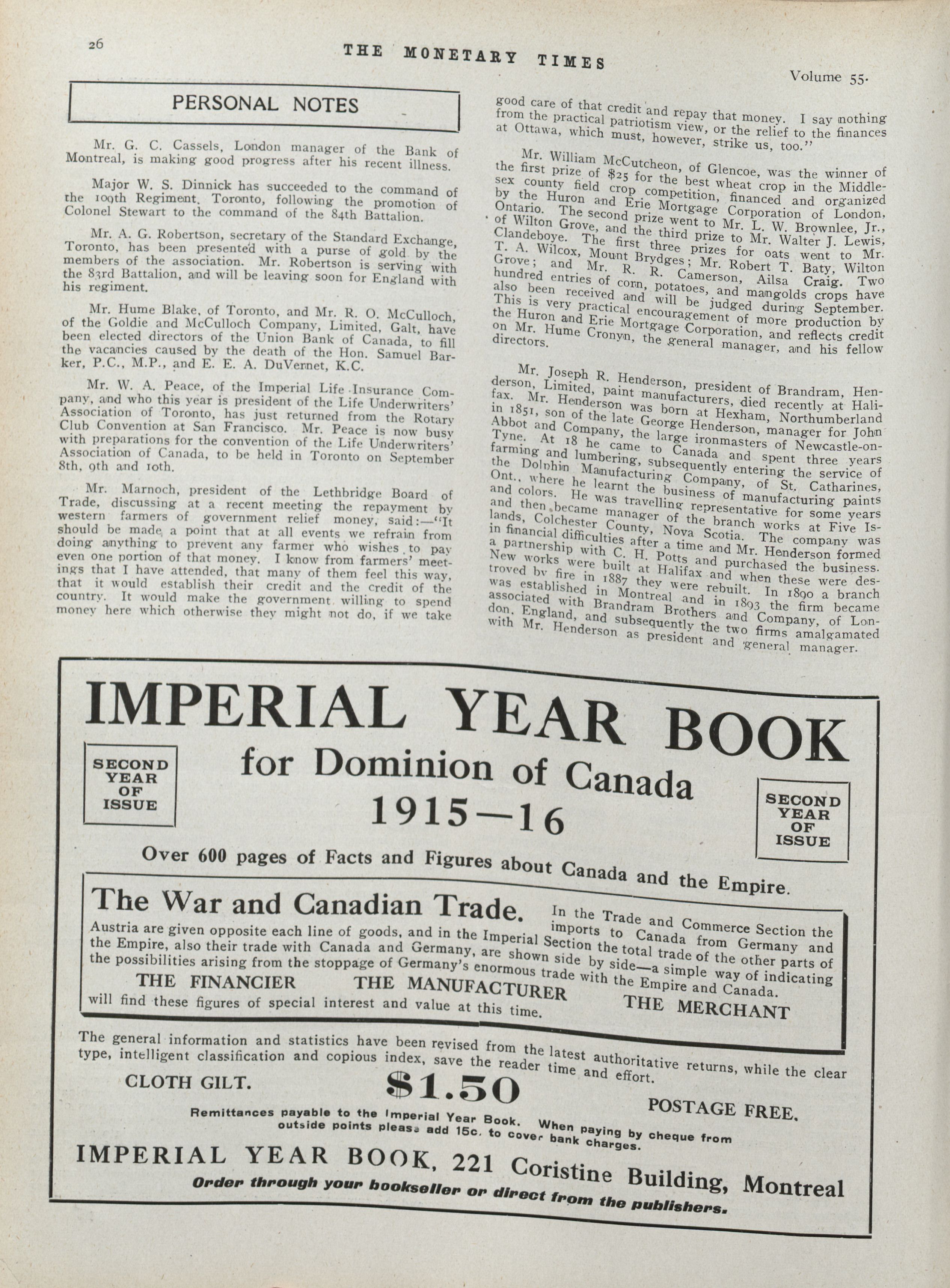 The monetary times, trade review and insurance chronicle : Volume 55 No. 7 (August 13, 1915)