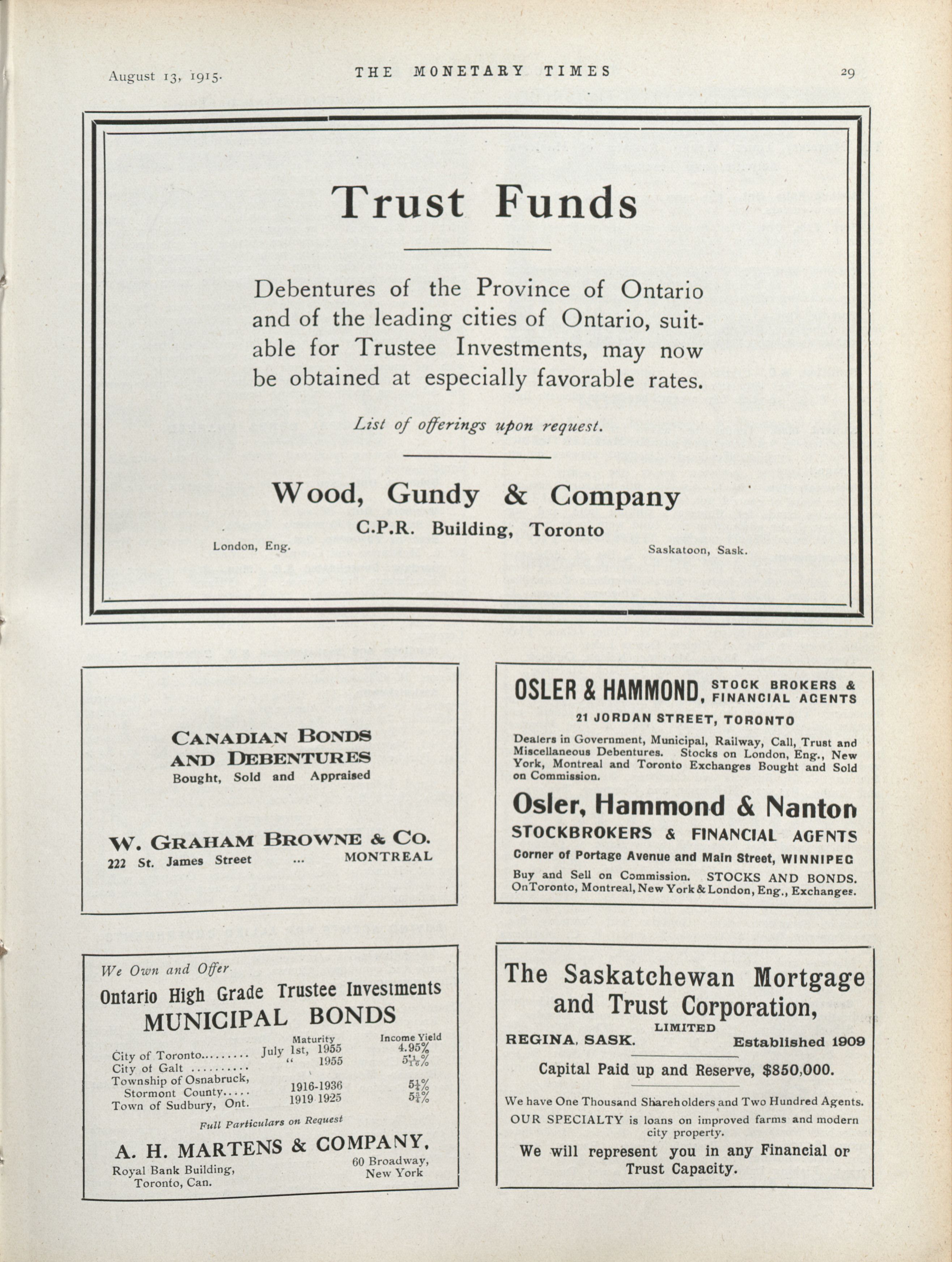 The Monetary Times, trade review and insurance chronicle. : Volume 55 No. 7 (August 13, 1915)