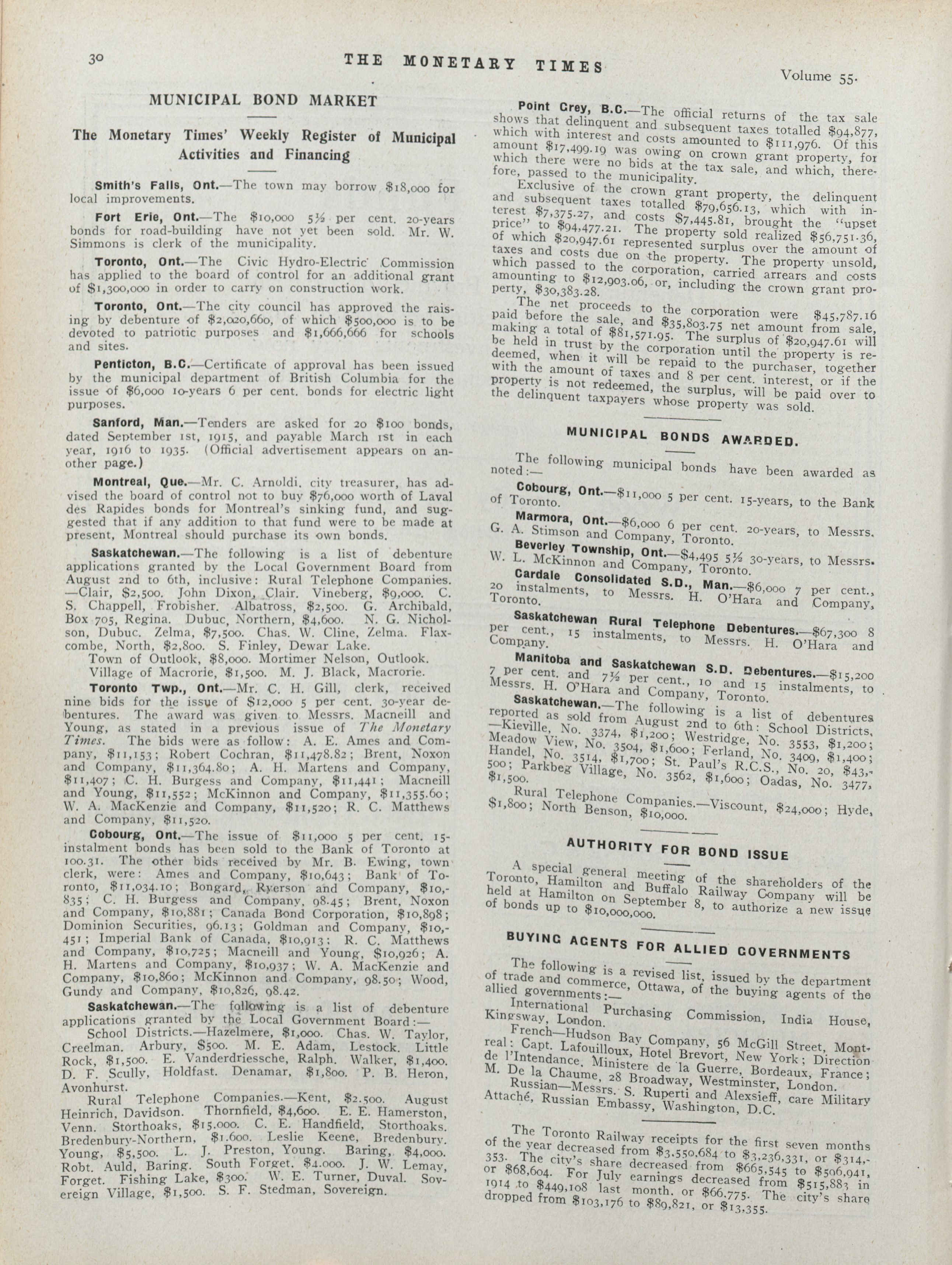 The monetary times, trade review and insurance chronicle : Volume 55 No. 7 (August 13, 1915)