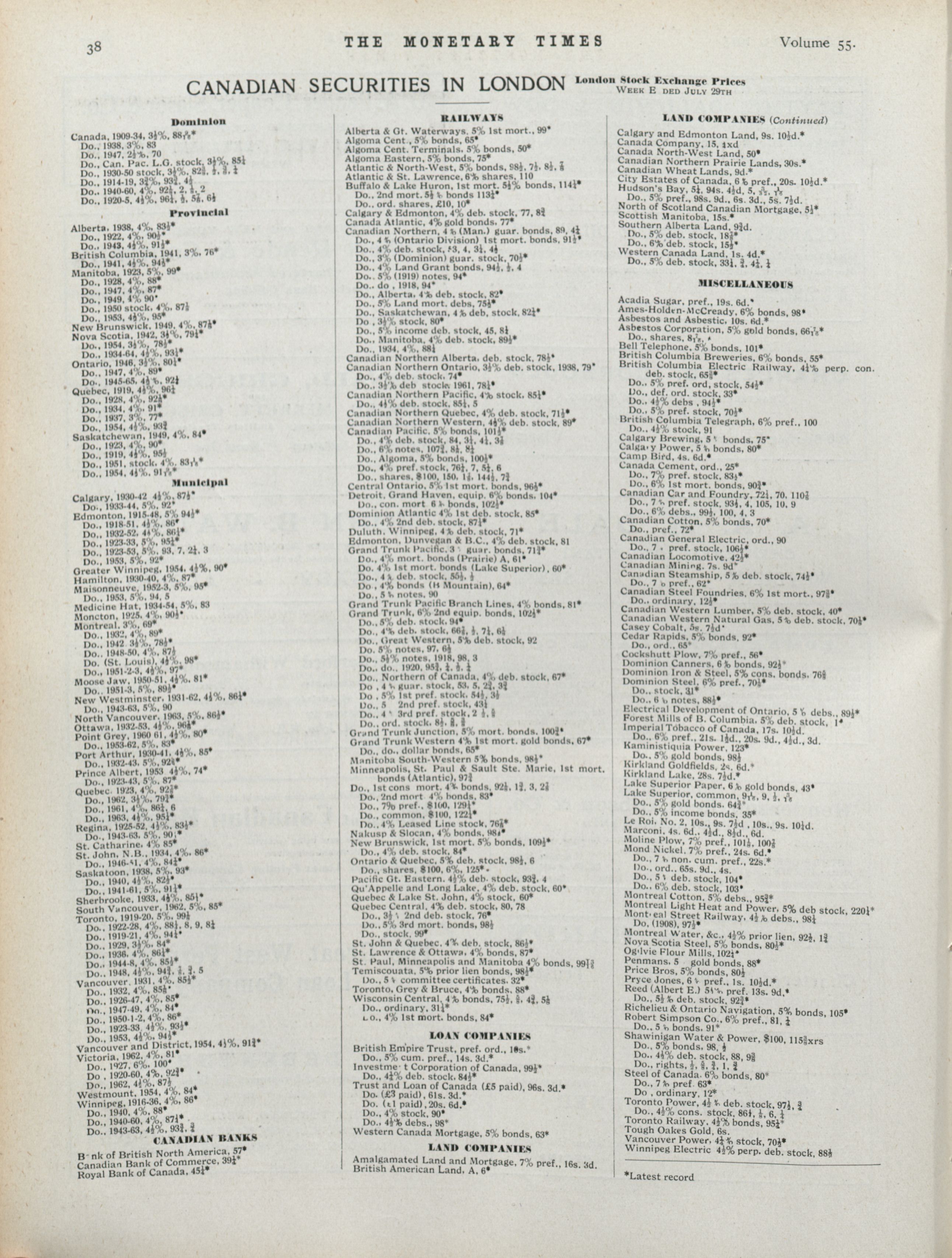 The Monetary Times, trade review and insurance chronicle. : Volume 55 No. 7 (August 13, 1915)