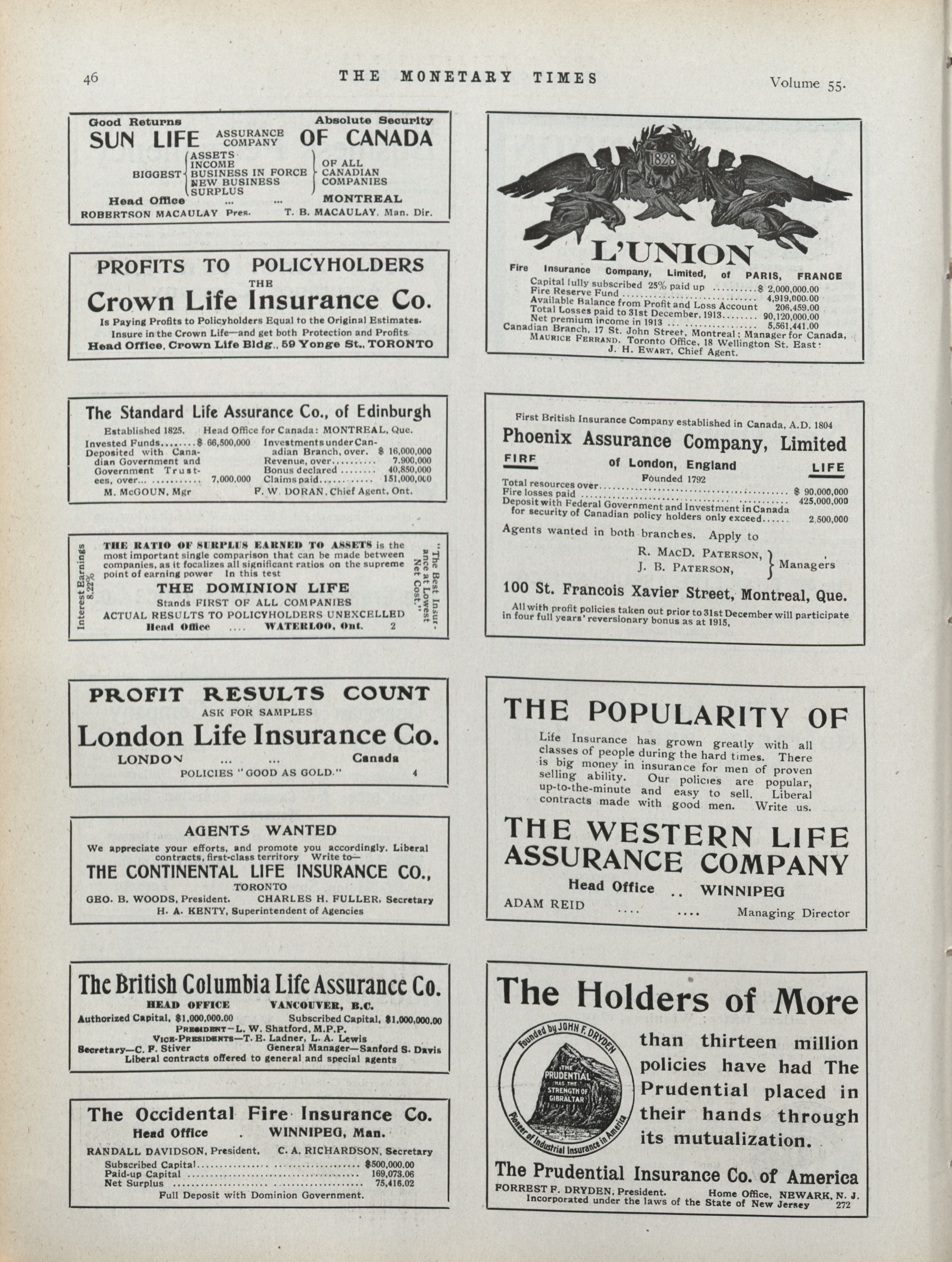 The monetary times, trade review and insurance chronicle : Volume 55 No. 7 (August 13, 1915)