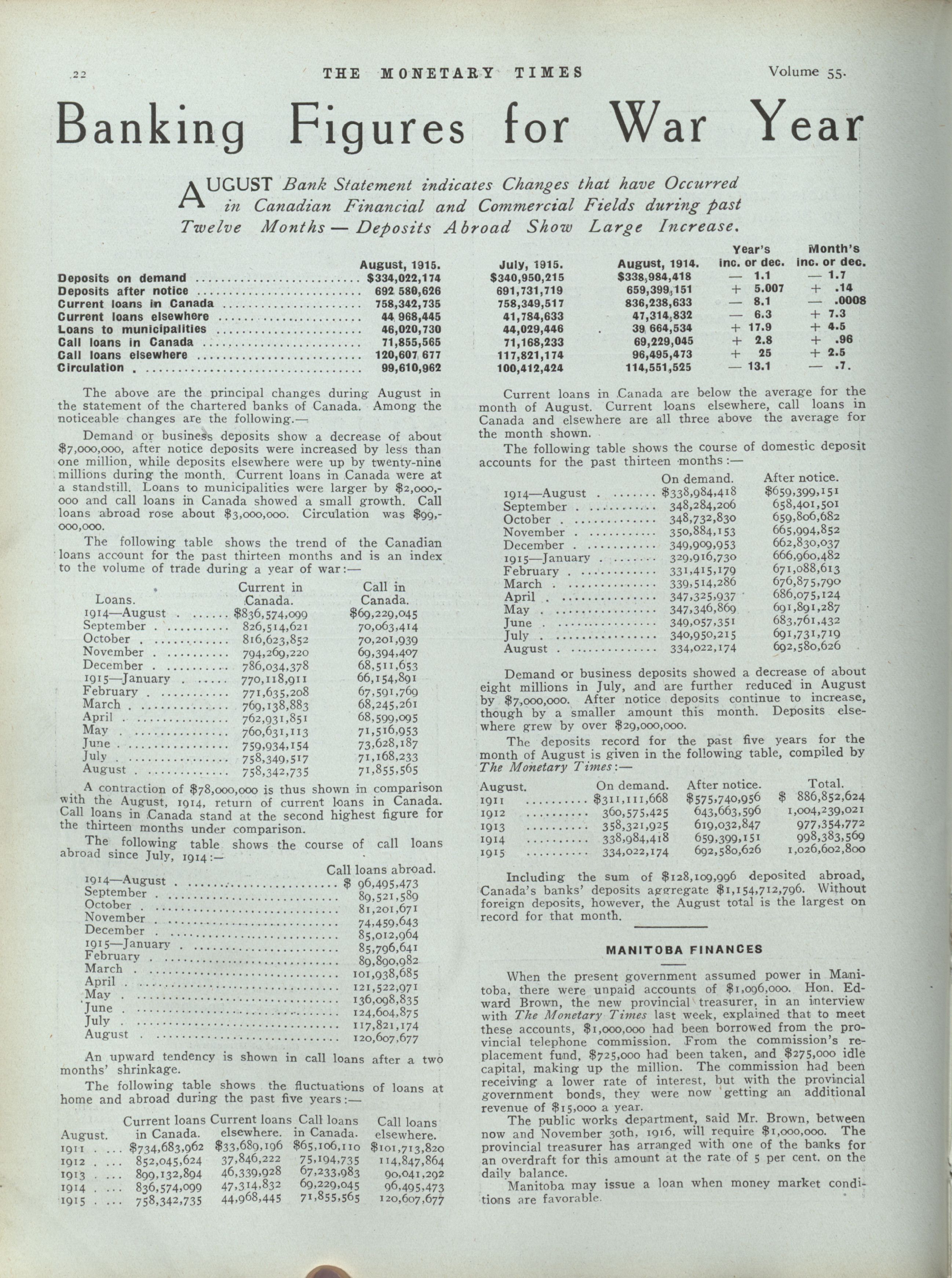 - The Monetary Times, trade review and insurance chronicle. : Volume 55 No. 14 (October 1, 1915)