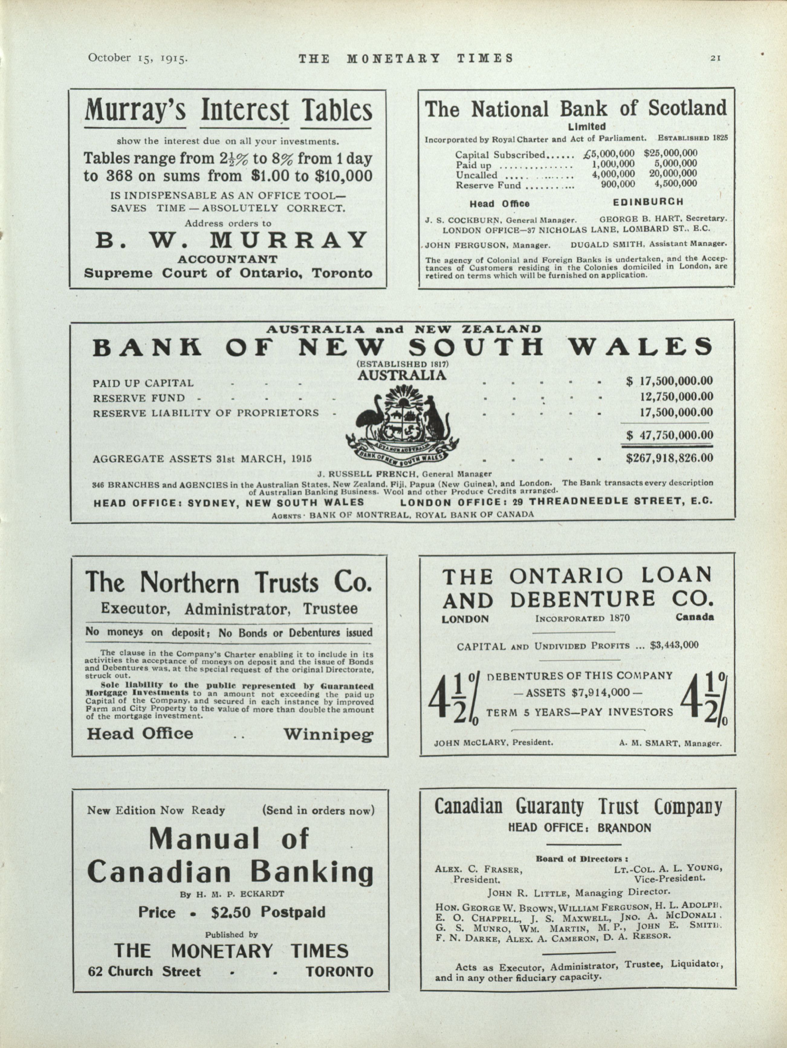 - The Monetary Times, trade review and insurance chronicle. : Volume 55 No. 16 (October 15, 1915)