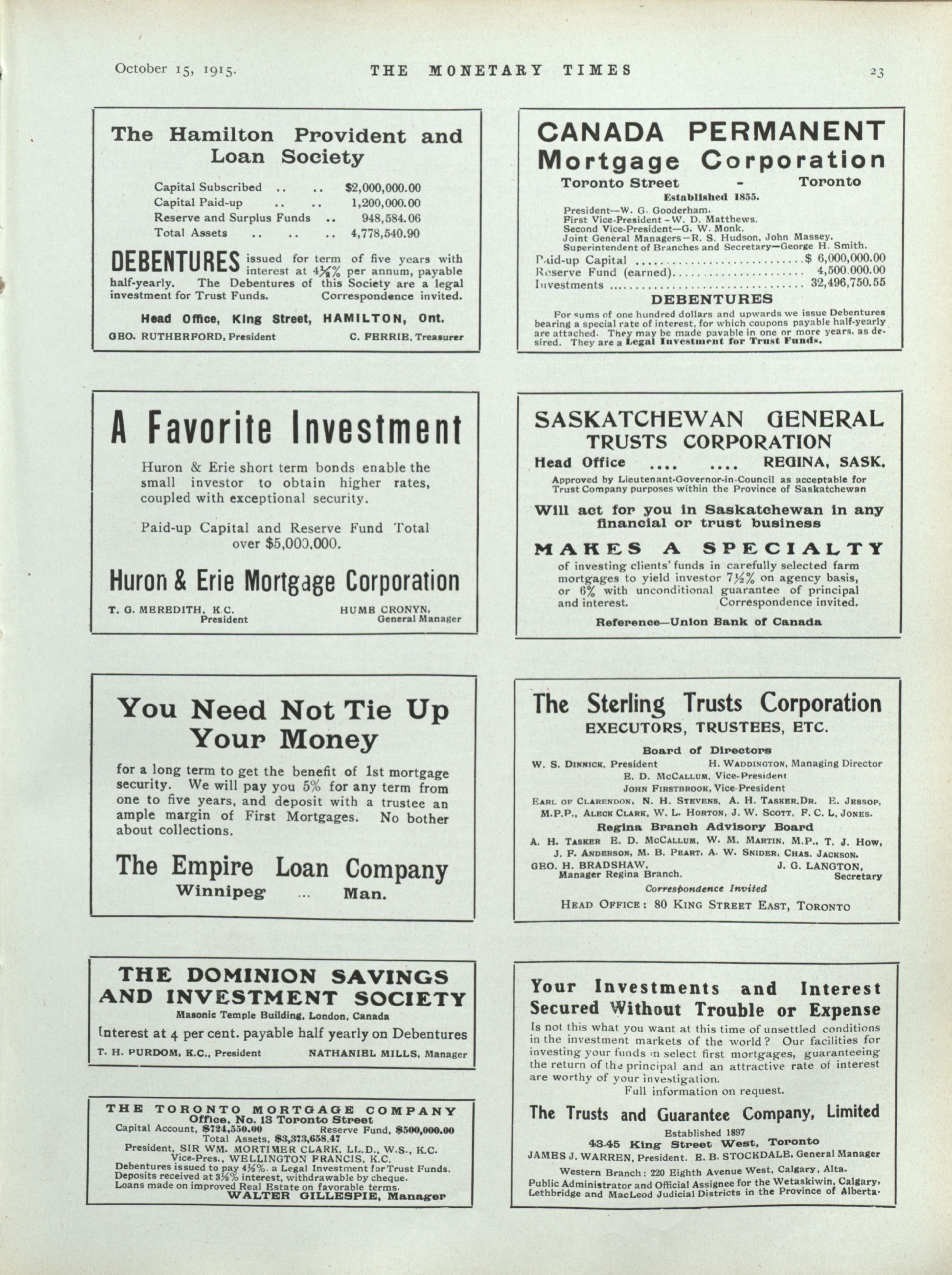 The monetary times, trade review and insurance chronicle : Volume 55 No. 16 (October 15, 1915)