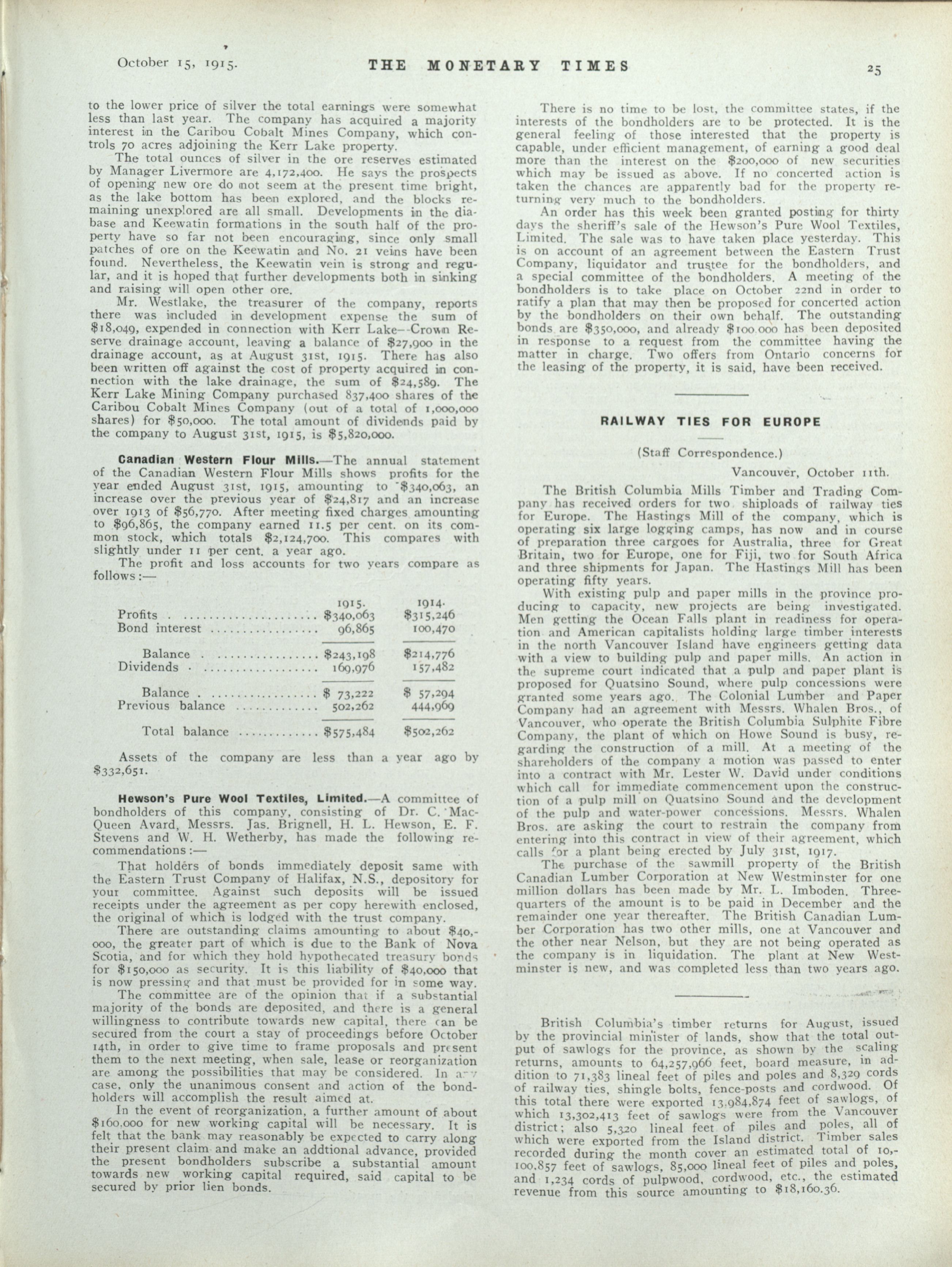 - The Monetary Times, trade review and insurance chronicle. : Volume 55 No. 16 (October 15, 1915)