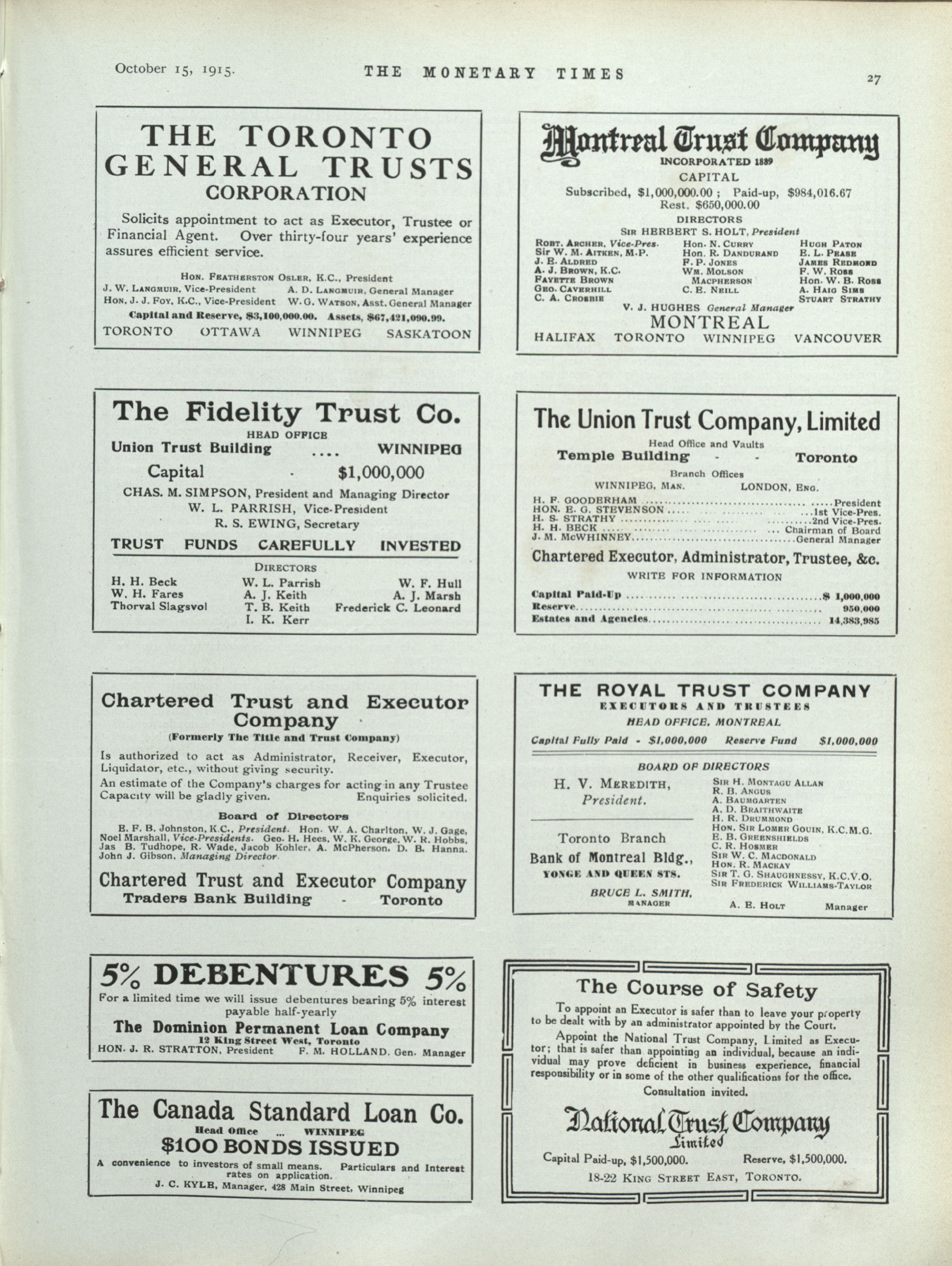- The Monetary Times, trade review and insurance chronicle. : Volume 55 No. 16 (October 15, 1915)