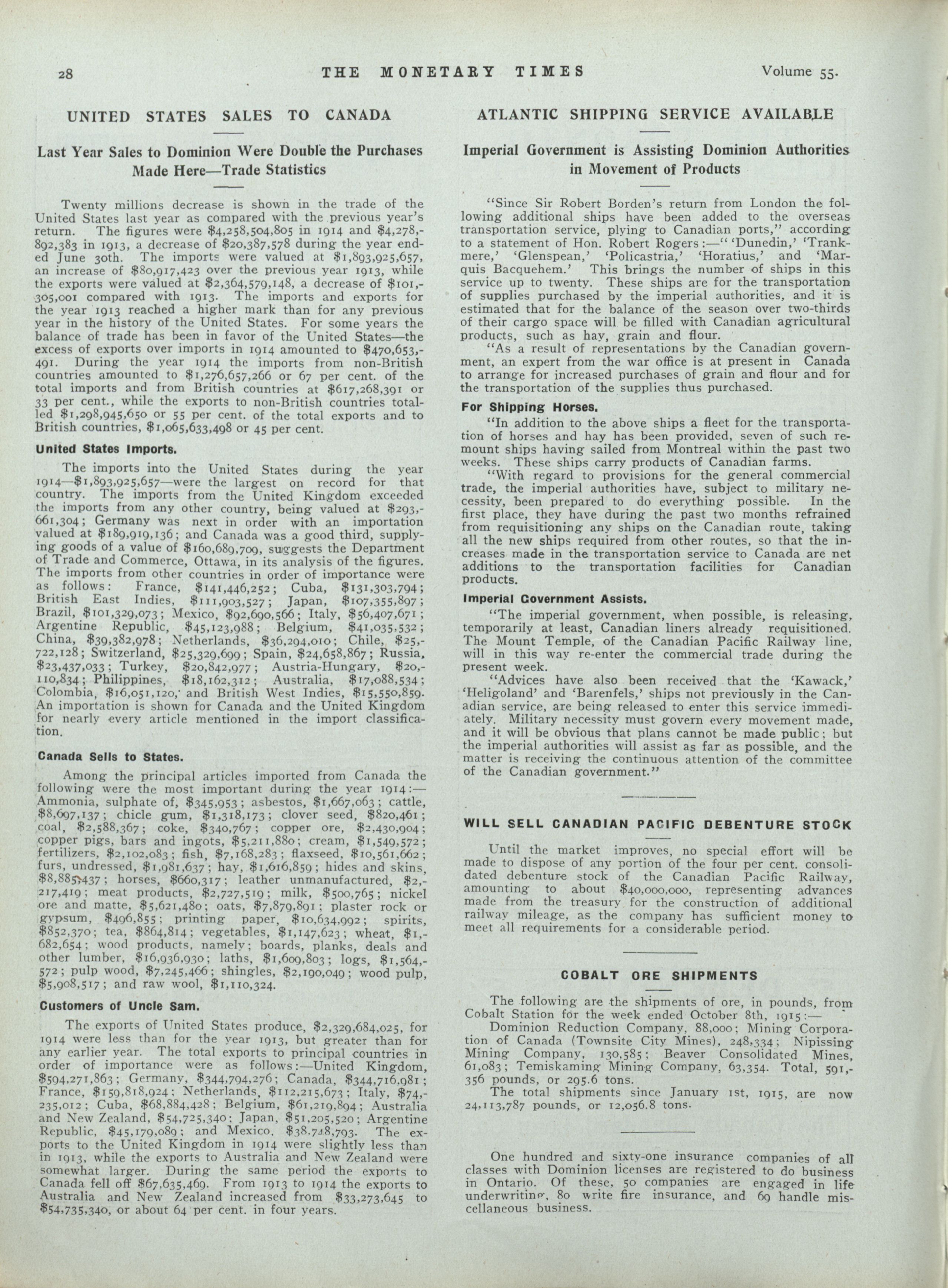 - The Monetary Times, trade review and insurance chronicle. : Volume 55 No. 16 (October 15, 1915)