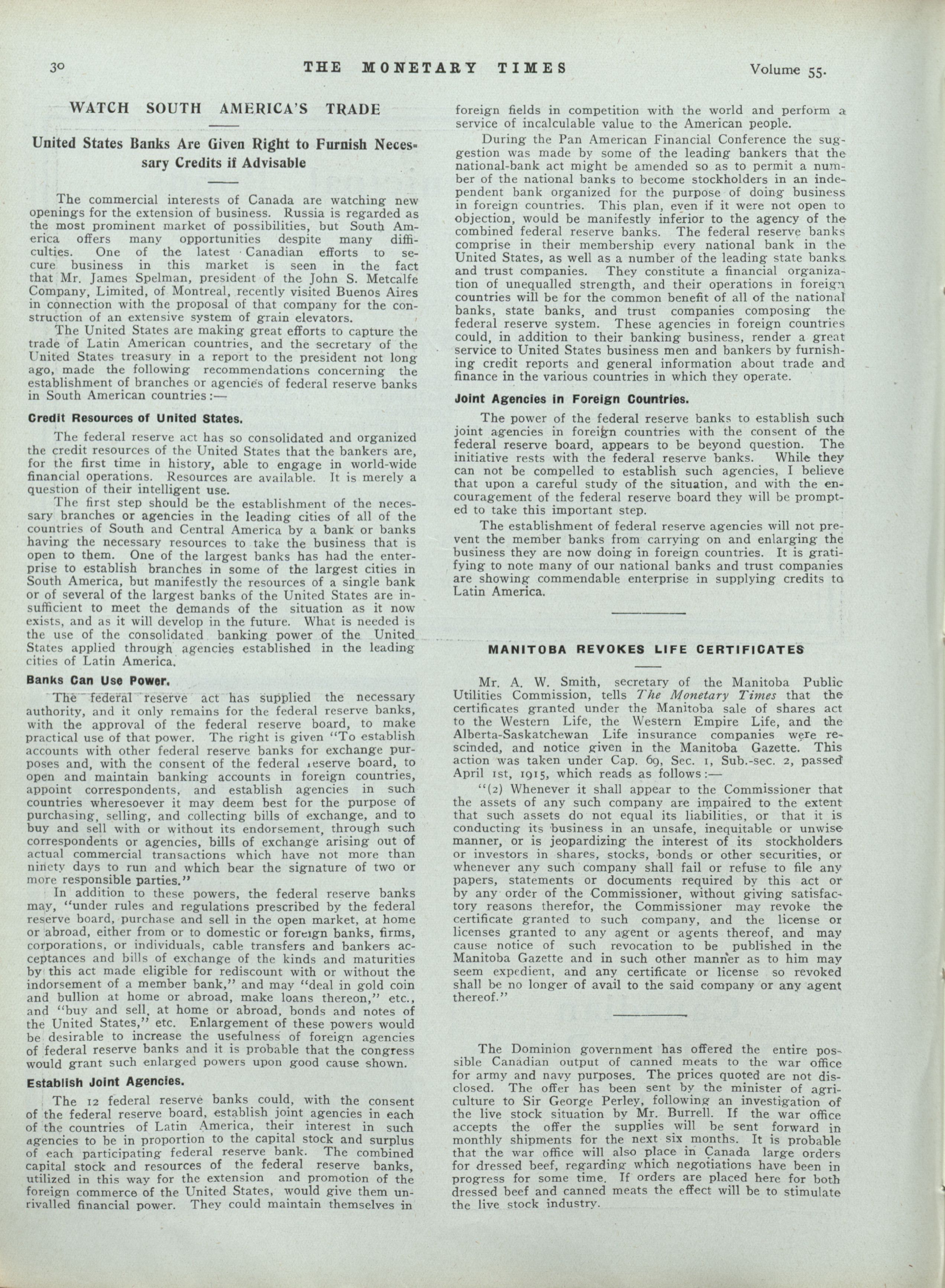 The Monetary Times, trade review and insurance chronicle. : Volume 55 No. 16 (October 15, 1915)