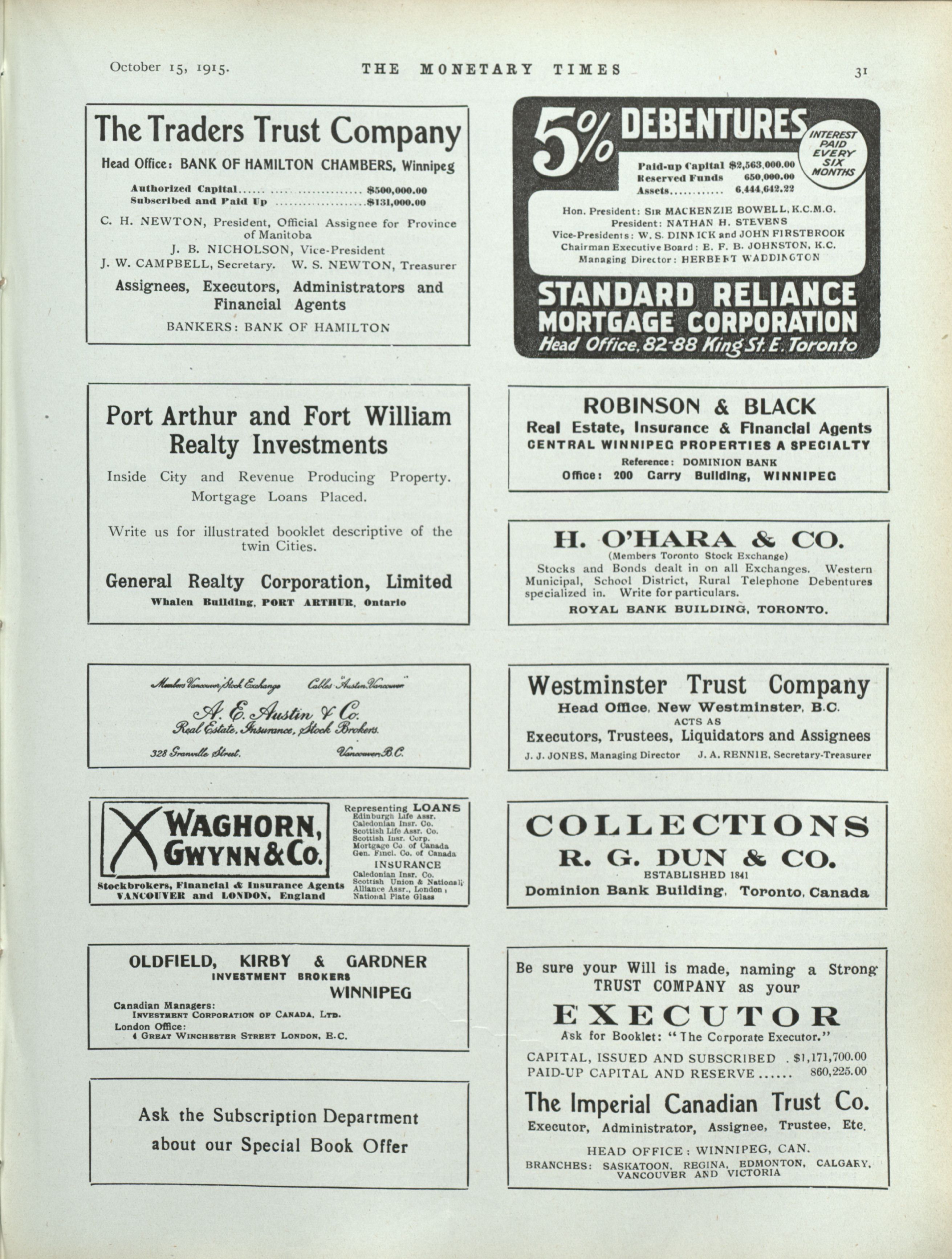 - The Monetary Times, trade review and insurance chronicle. : Volume 55 No. 16 (October 15, 1915)