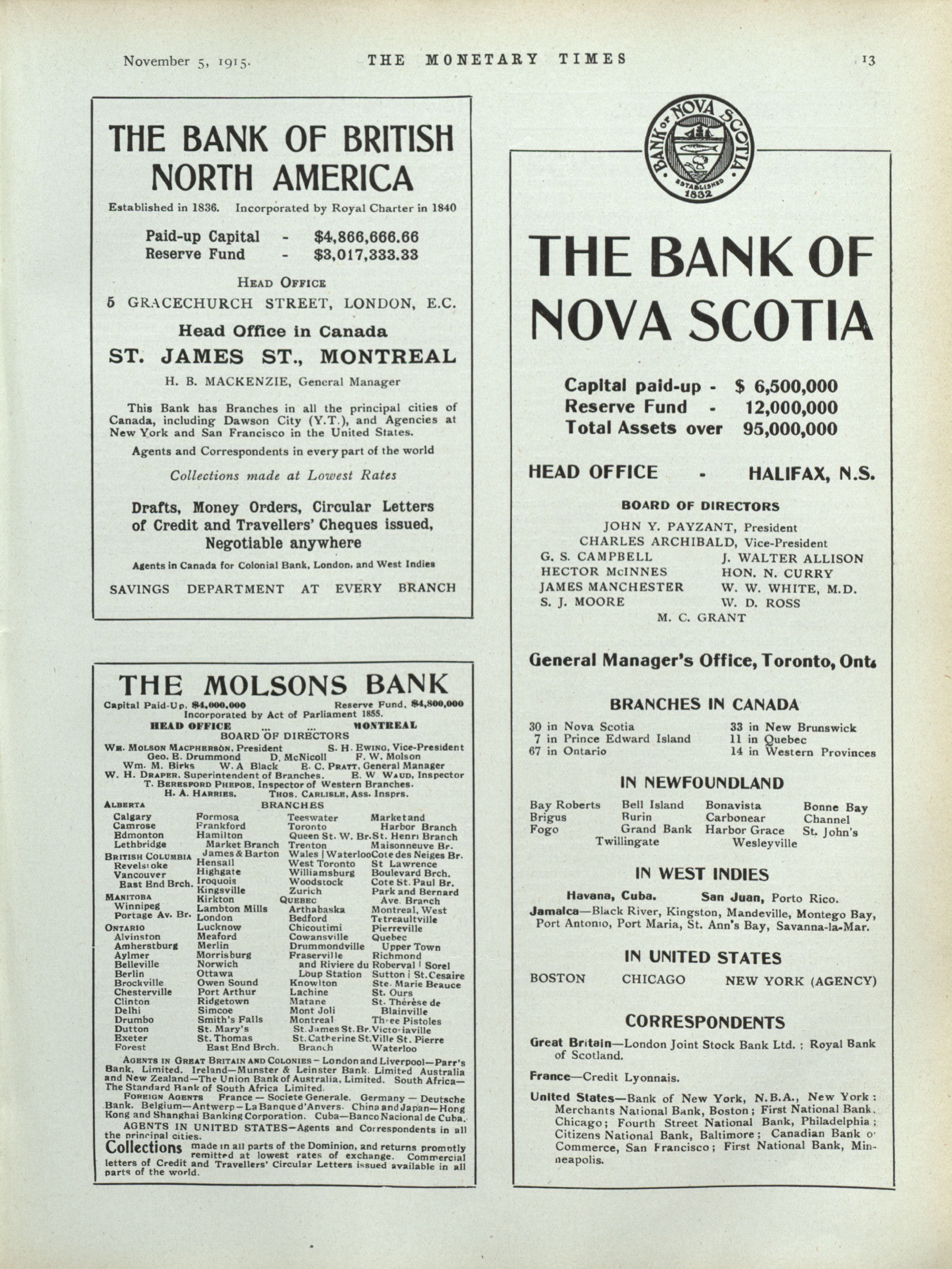 The monetary times, trade review and insurance chronicle : Volume 55 No. 19 (November 5, 1915)