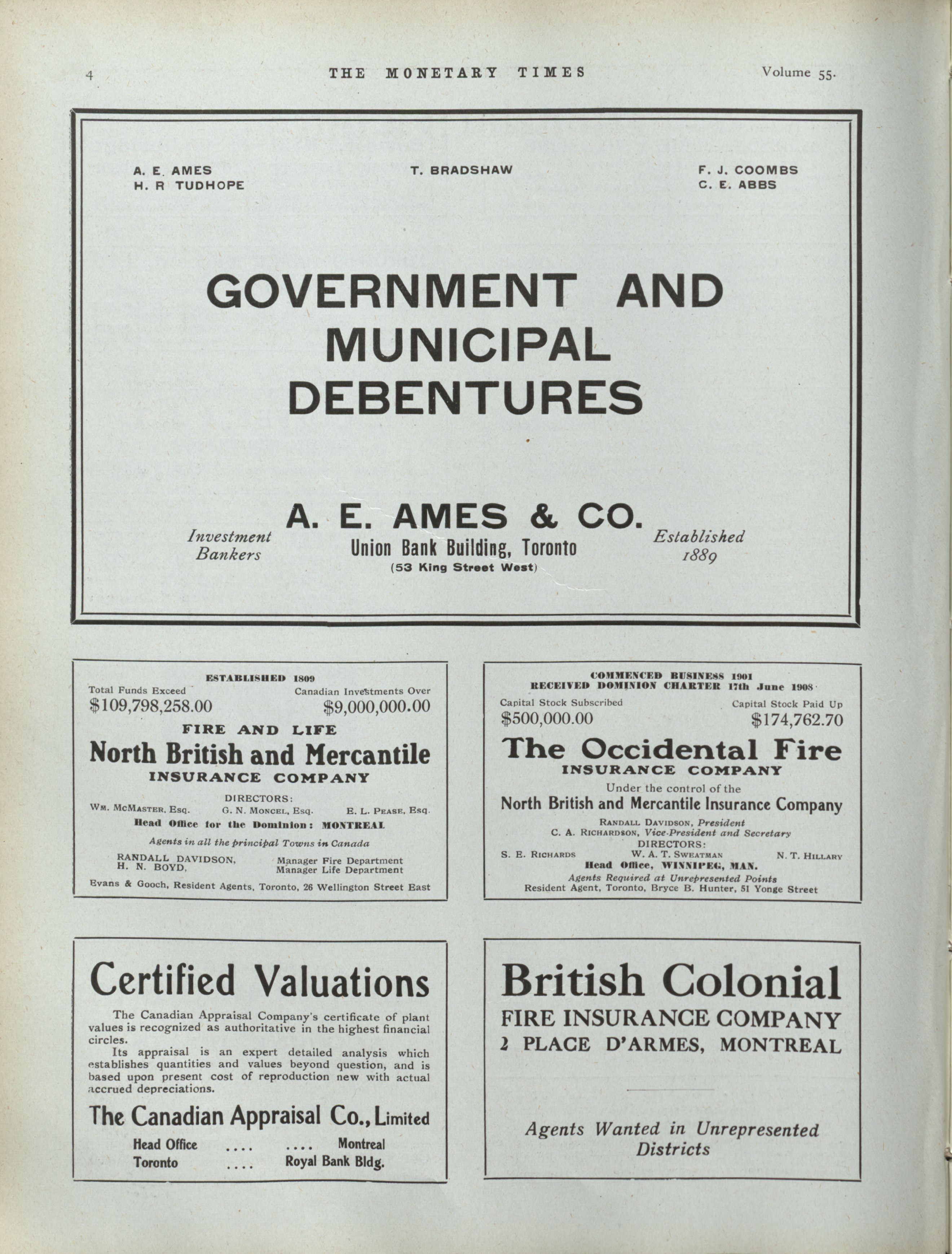 - The Monetary Times, trade review and insurance chronicle. : Volume 55 No. 21 (November 19, 1915)