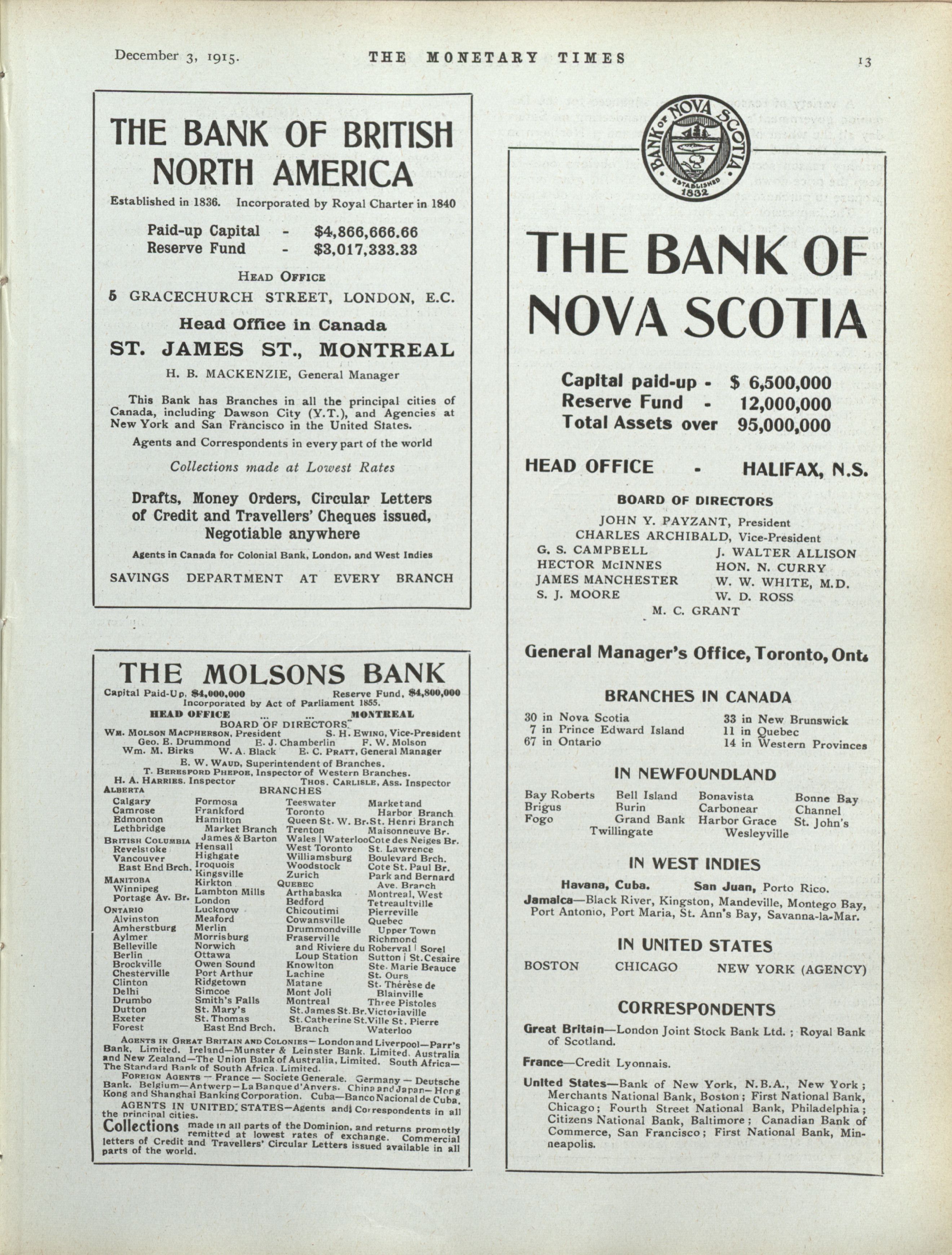 The Monetary Times, trade review and insurance chronicle. : Volume 55 No. 23 (December 3, 1915)