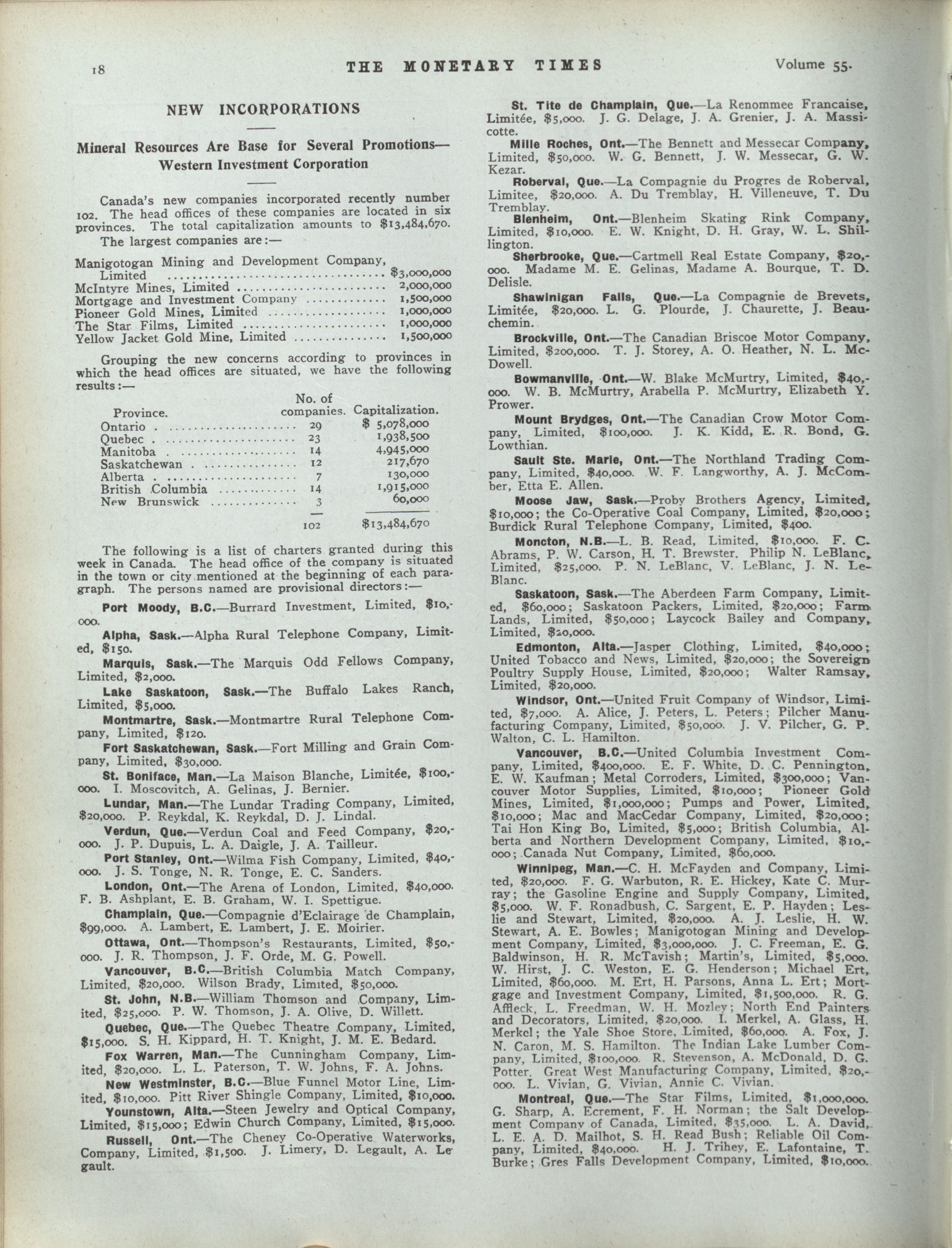 The Monetary Times, trade review and insurance chronicle. : Volume 55 No. 23 (December 3, 1915)