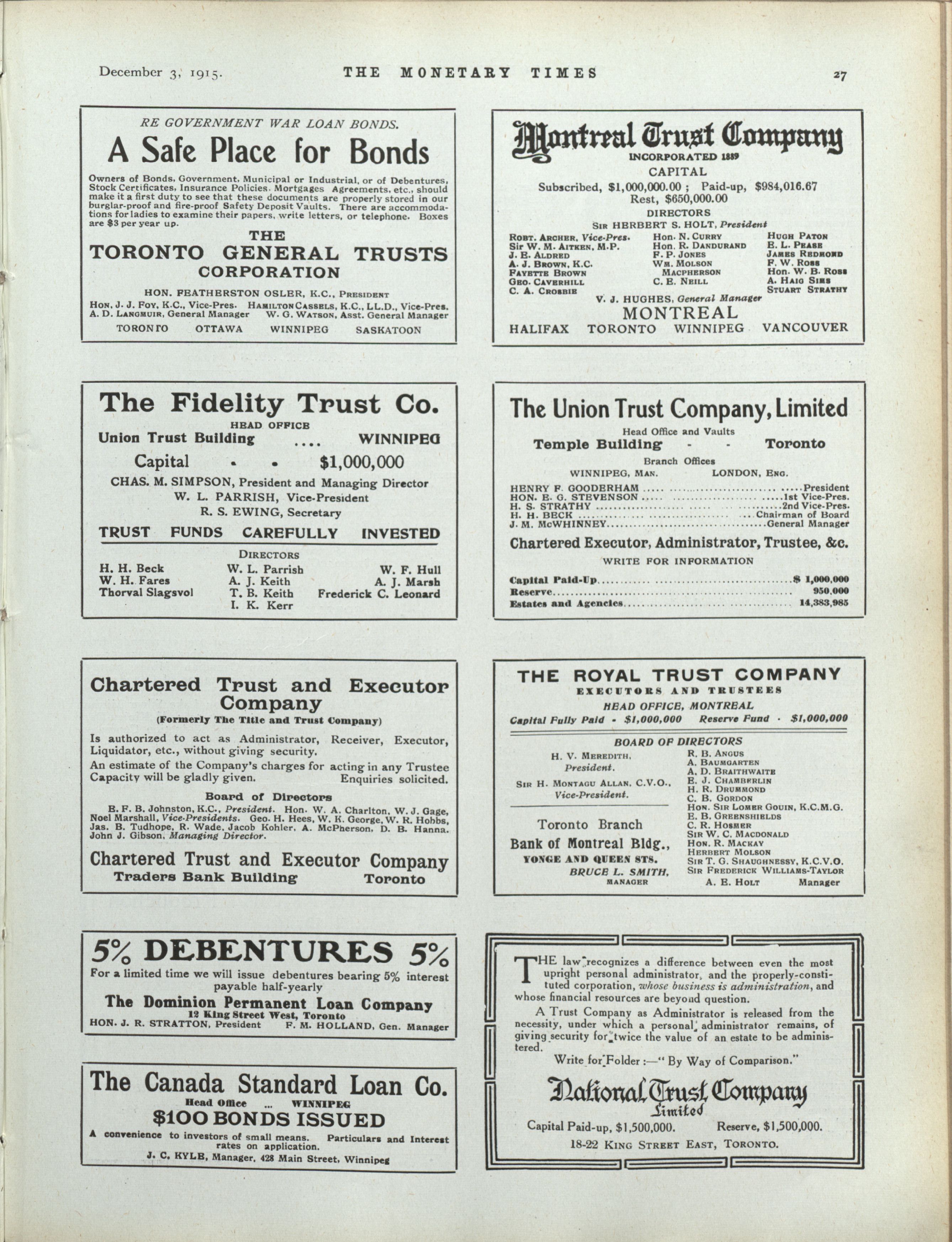 The Monetary Times, trade review and insurance chronicle. : Volume 55 No. 23 (December 3, 1915)