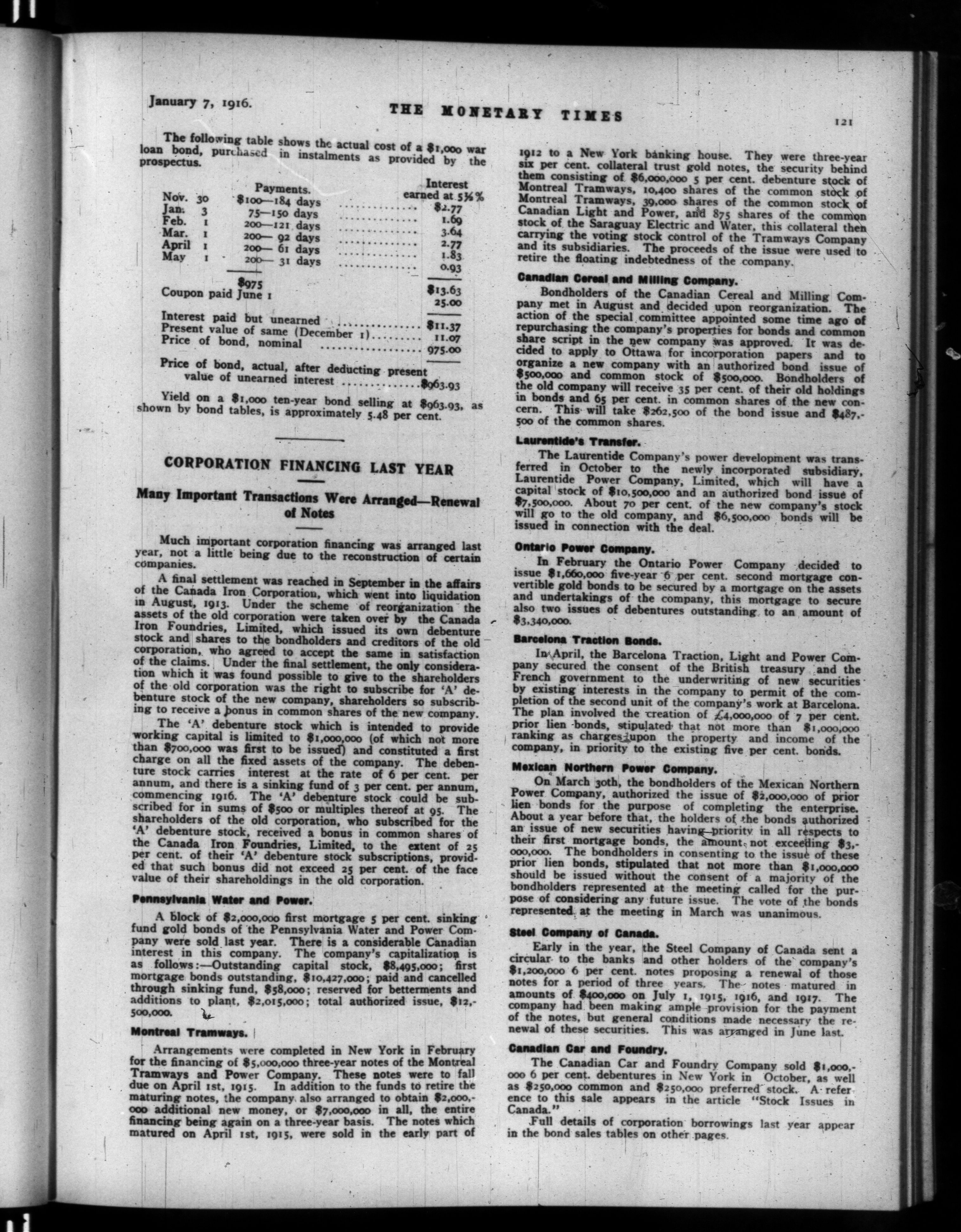 The monetary times, trade review and insurance chronicle : Volume 56, No. 1 (January 7, 1916)