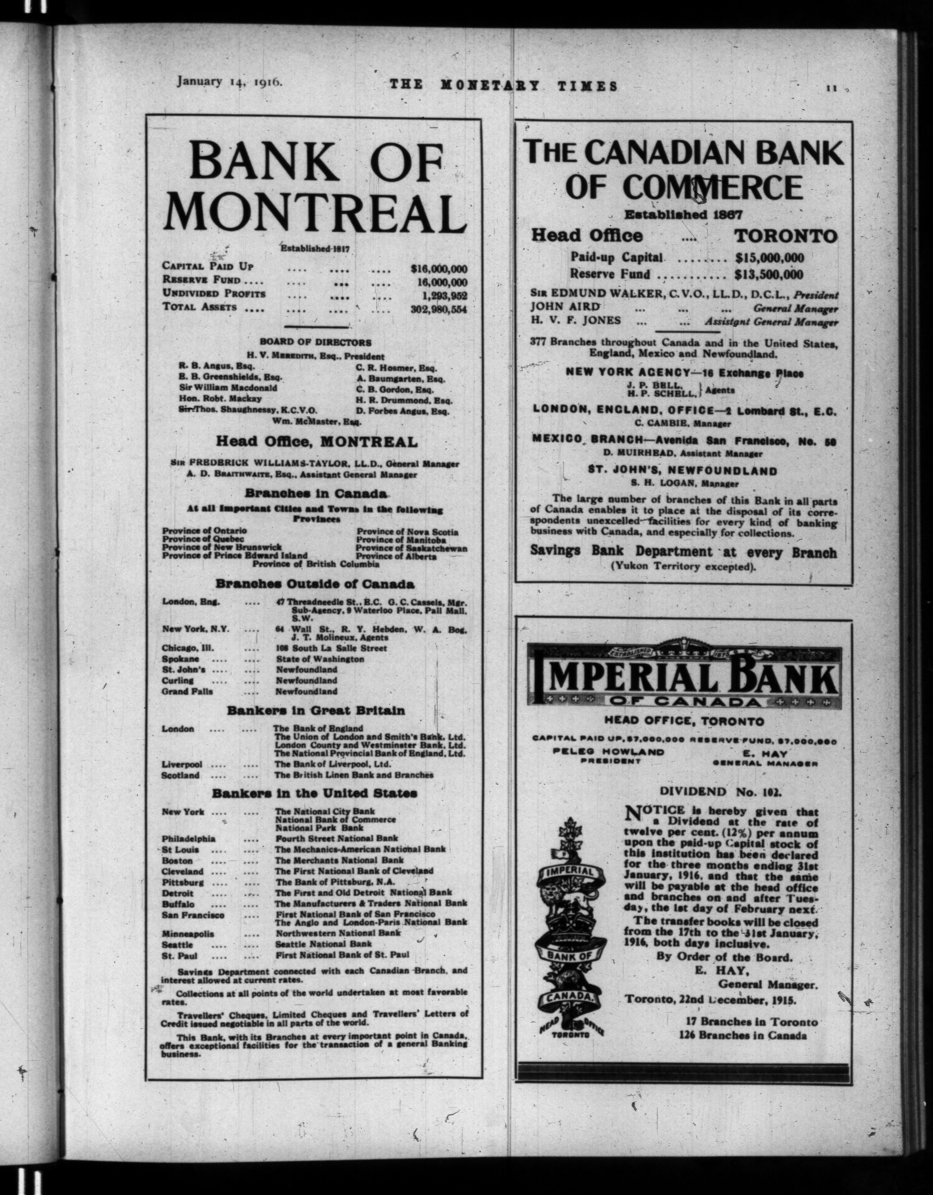 The monetary times, trade review and insurance chronicle : Volume 56, No. 2 (January 14, 1916)