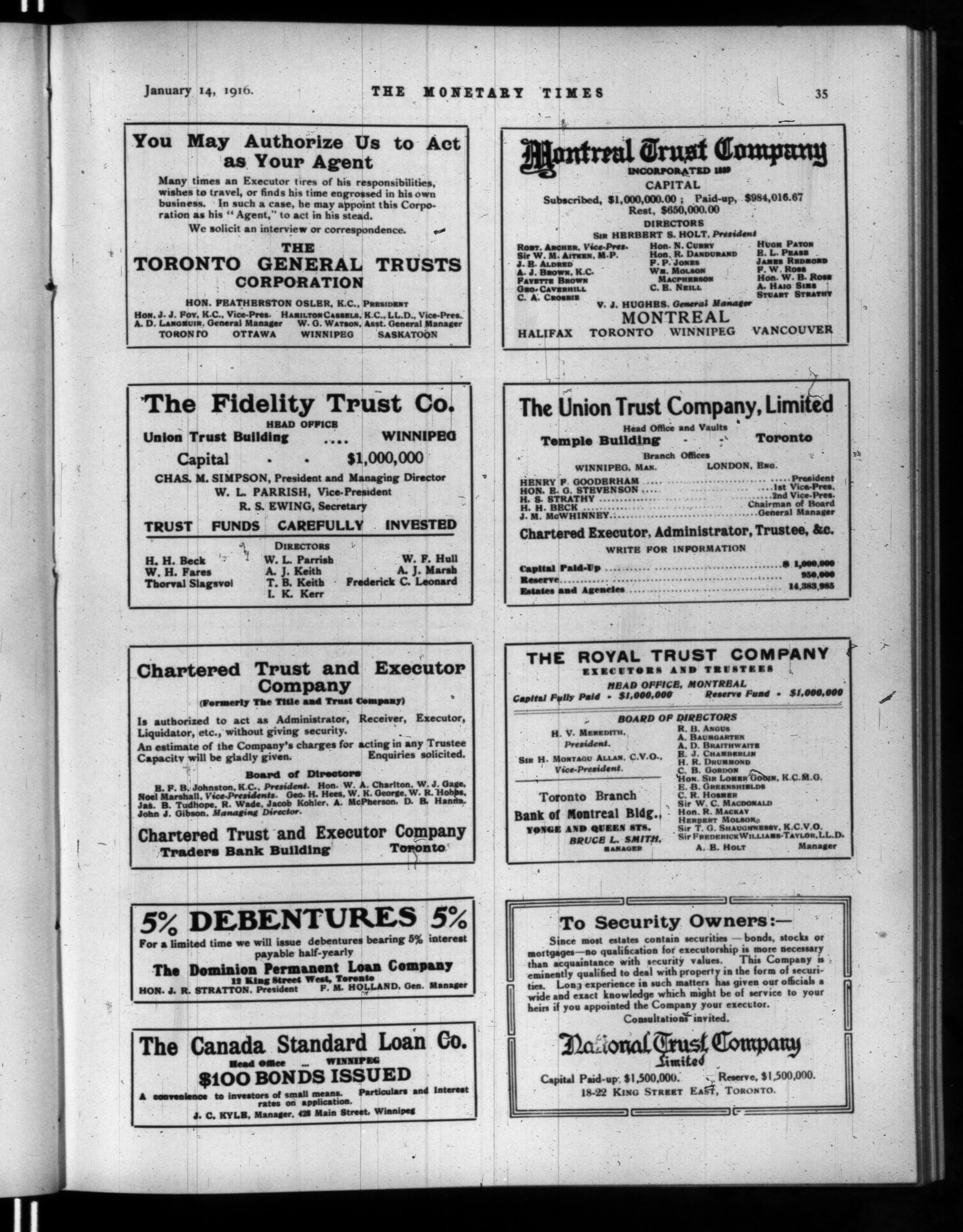 The monetary times, trade review and insurance chronicle : Volume 56, No. 2 (January 14, 1916)