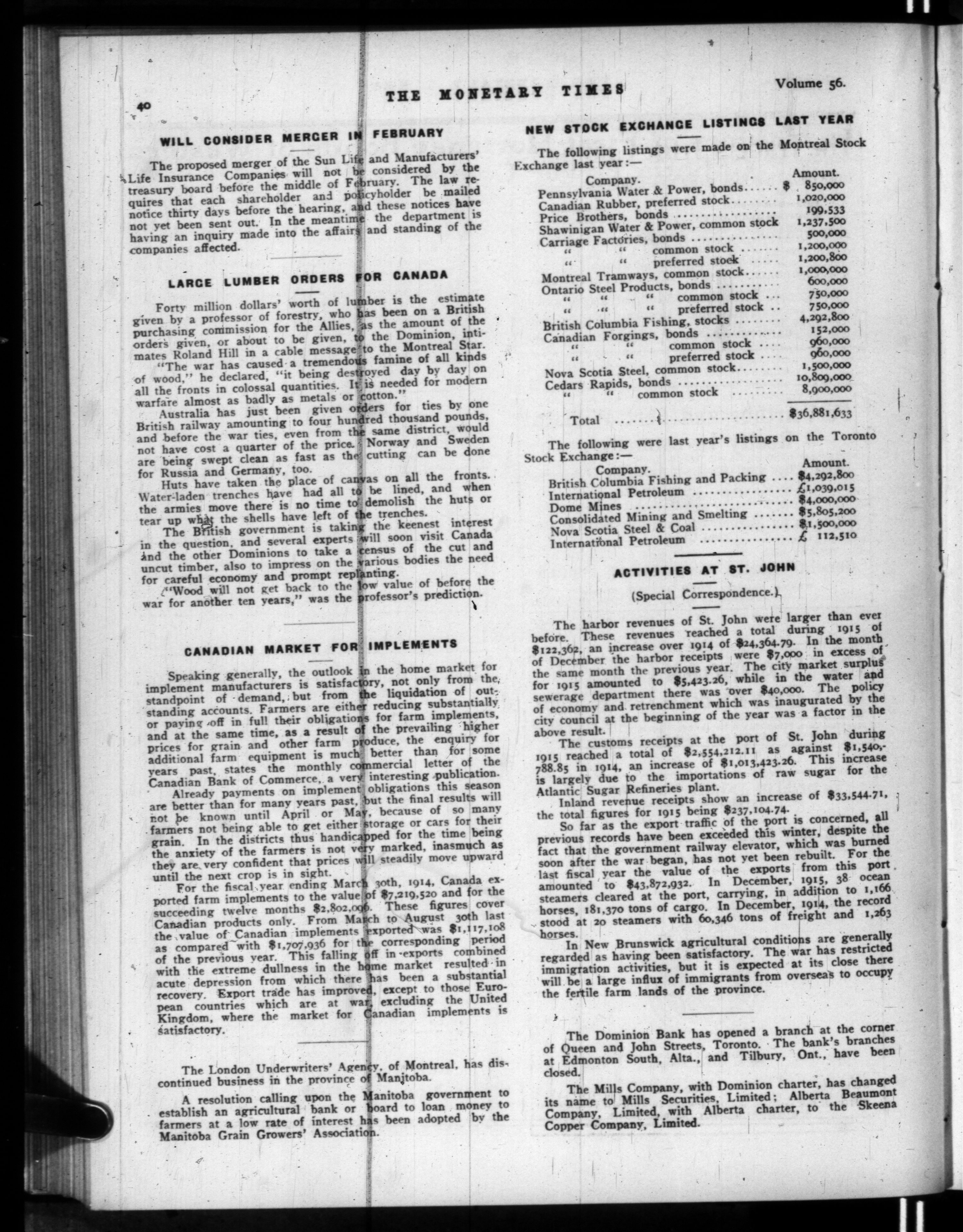 The monetary times, trade review and insurance chronicle : Volume 56, No. 2 (January 14, 1916)