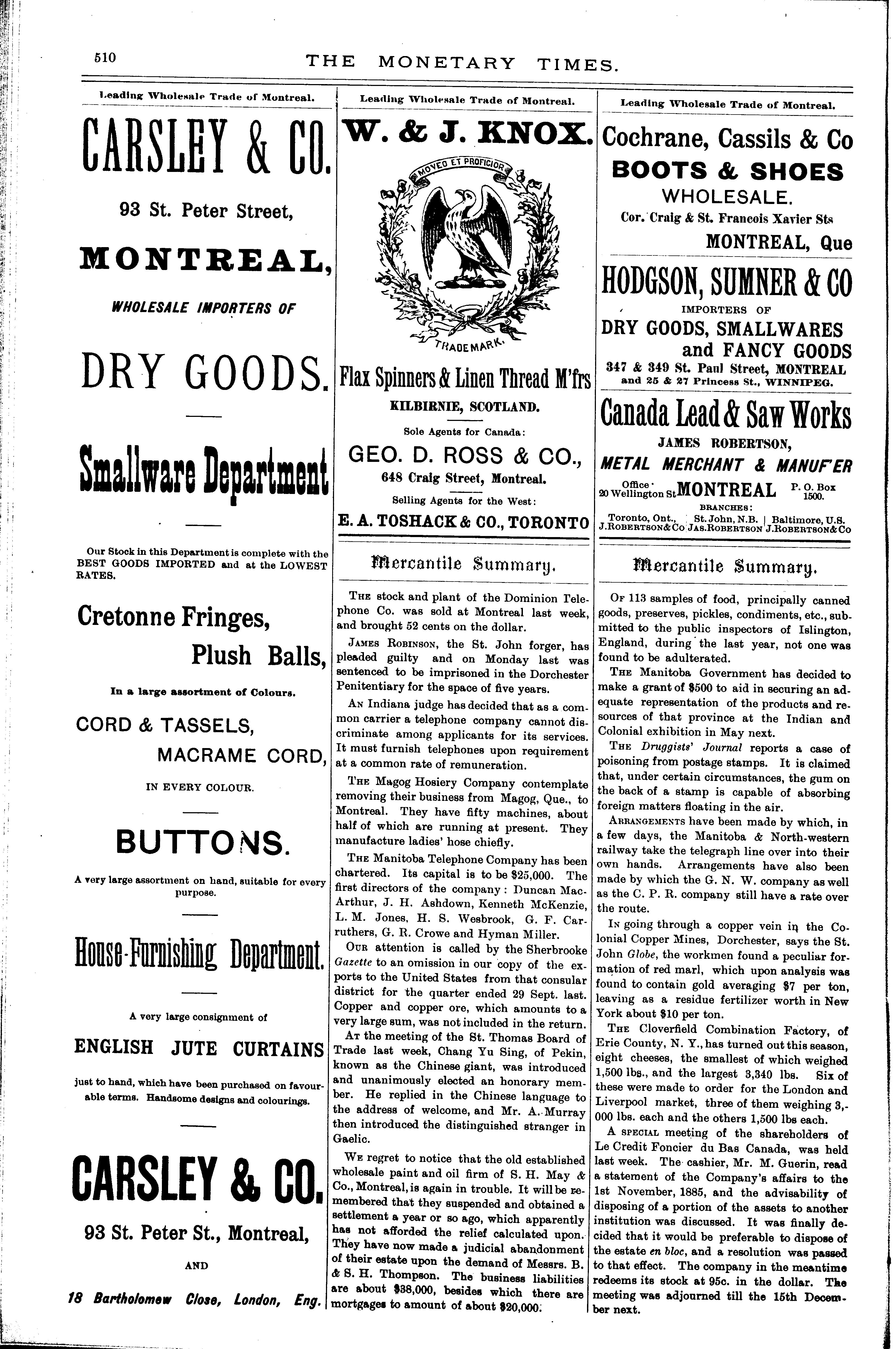 The monetary times, trade review and insurance chronicle : [Vol. 19, no. 19 (Nov. 6, 1885)]