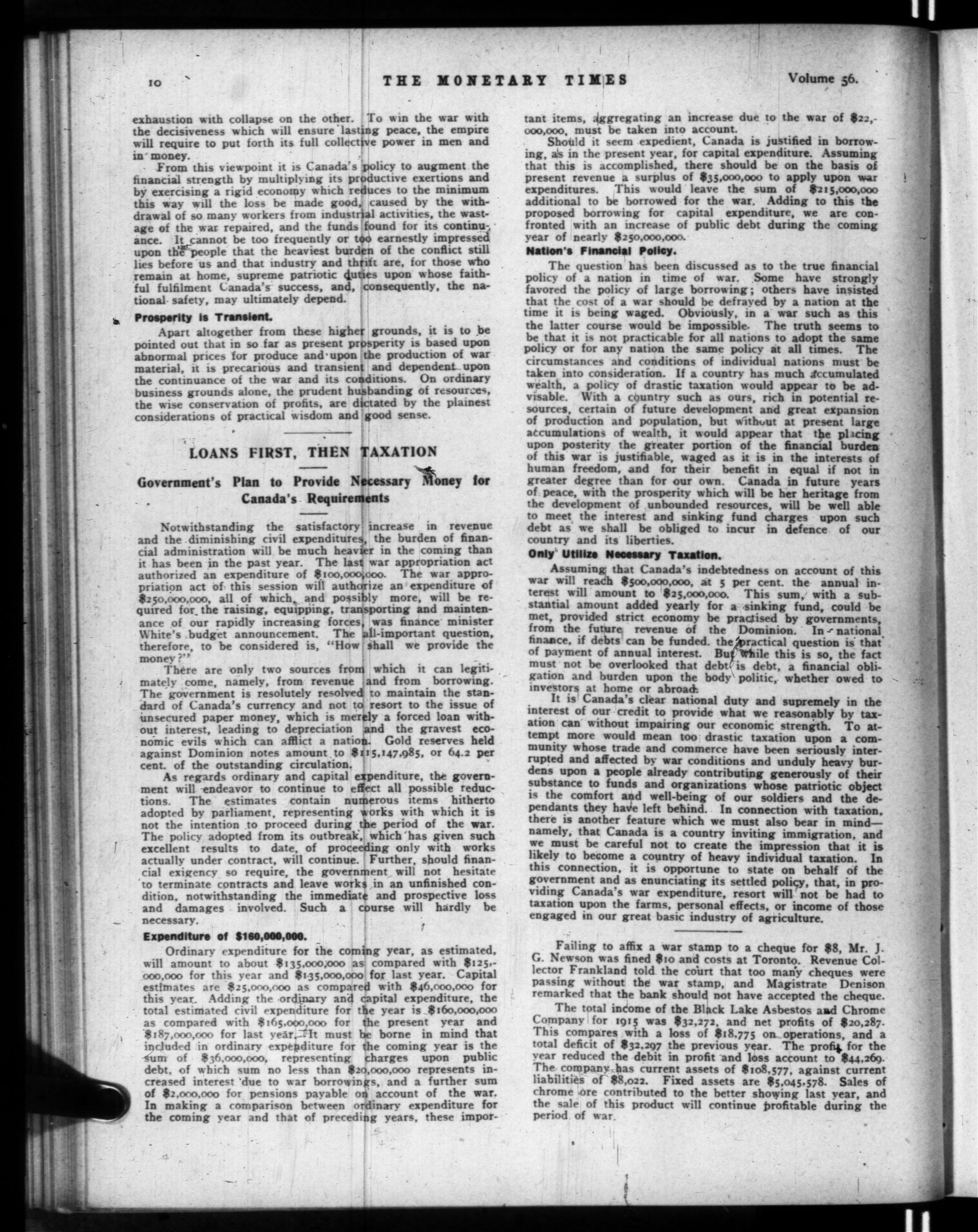 The monetary times, trade review and insurance chronicle : Volume 56, No. 7 (February 18, 1916)