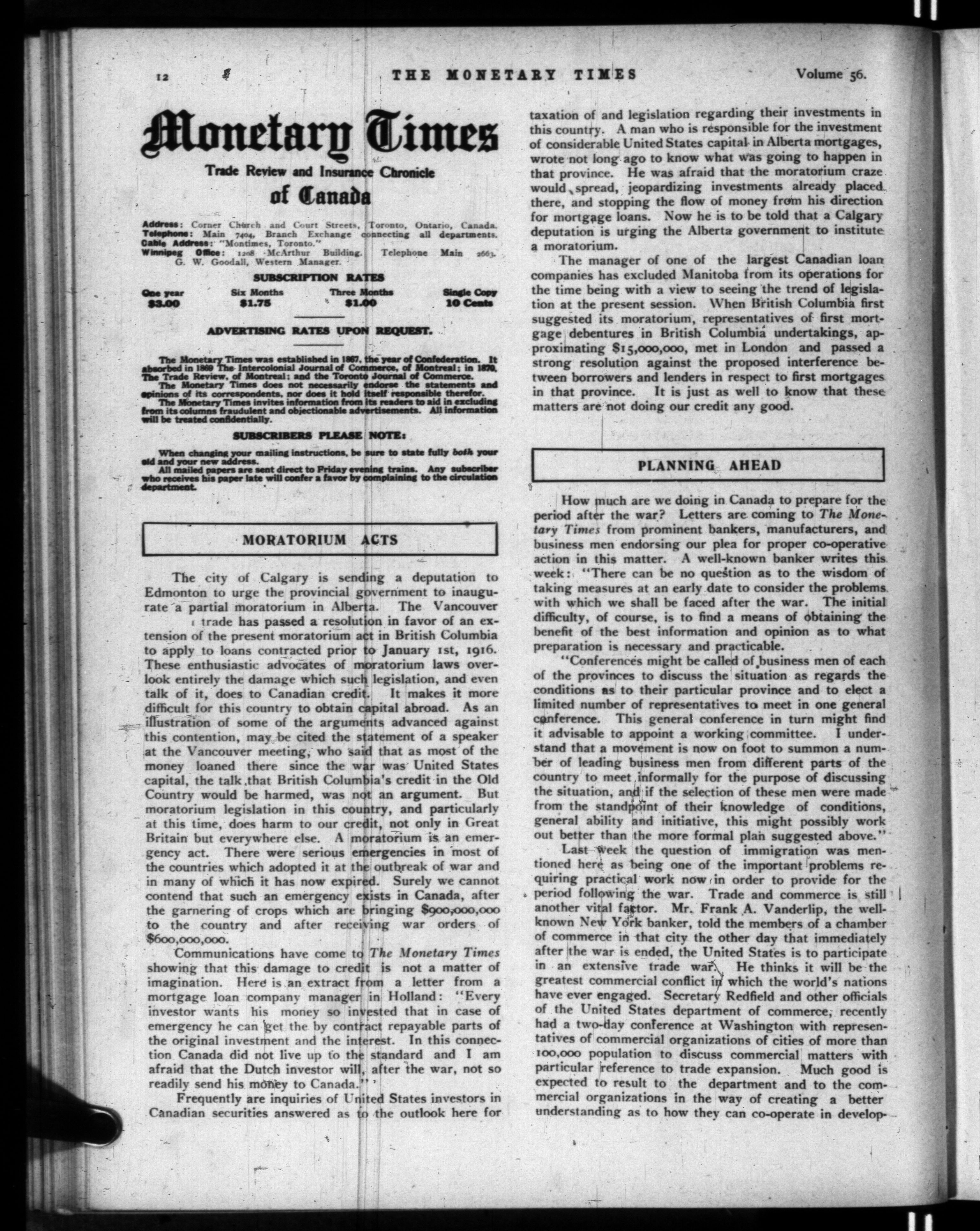 The monetary times, trade review and insurance chronicle : Volume 56, No. 7 (February 18, 1916)
