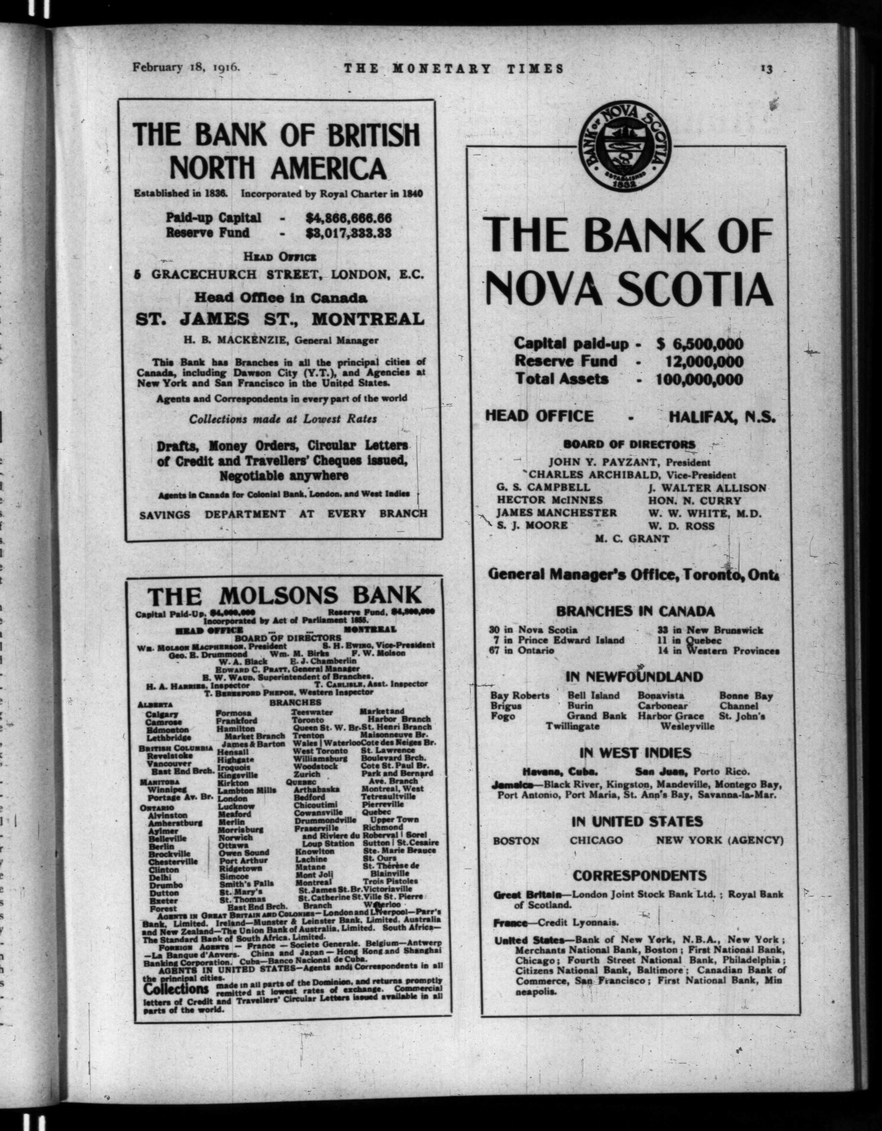 The monetary times, trade review and insurance chronicle : Volume 56, No. 7 (February 18, 1916)