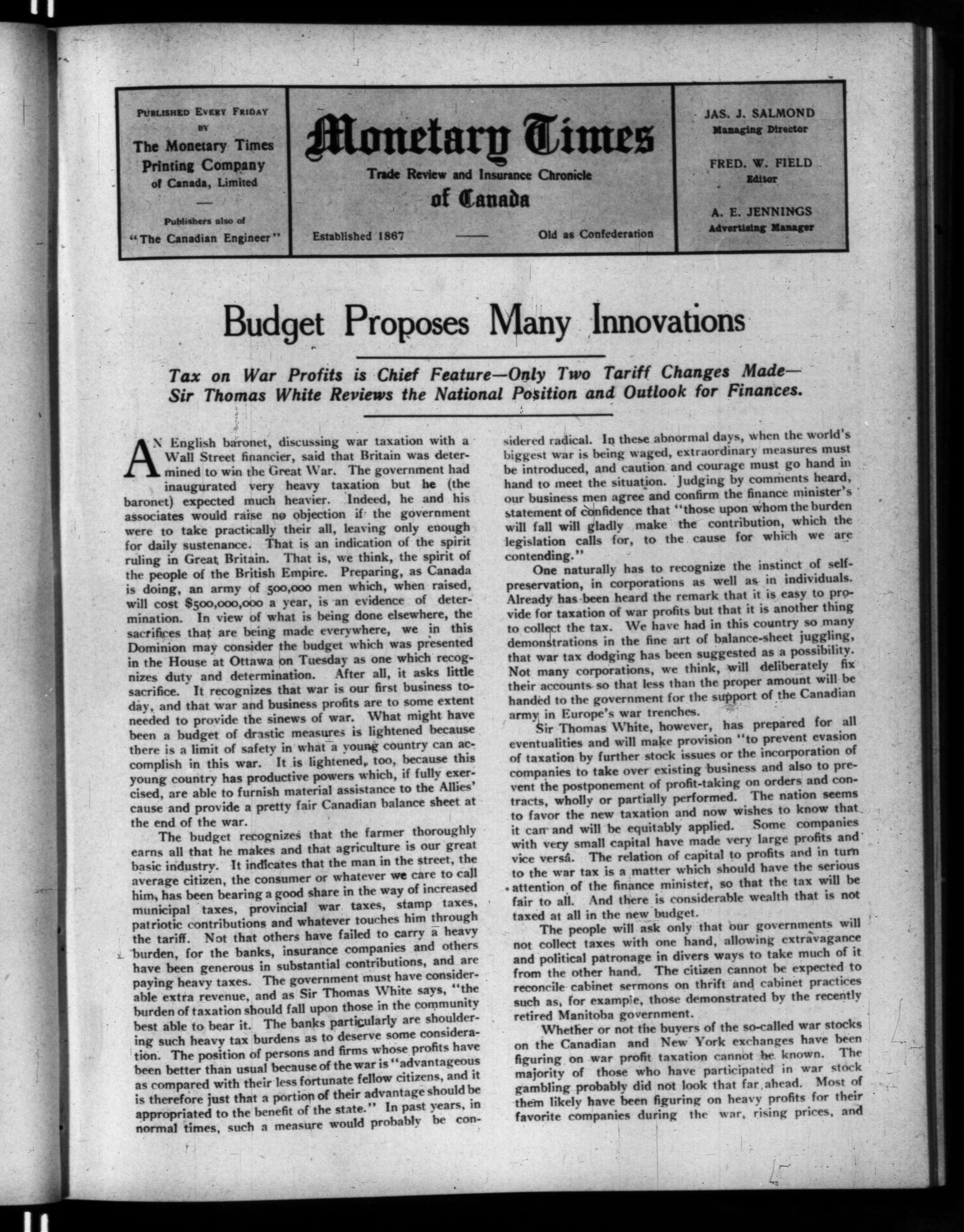 The monetary times, trade review and insurance chronicle : Volume 56, No. 7 (February 18, 1916)