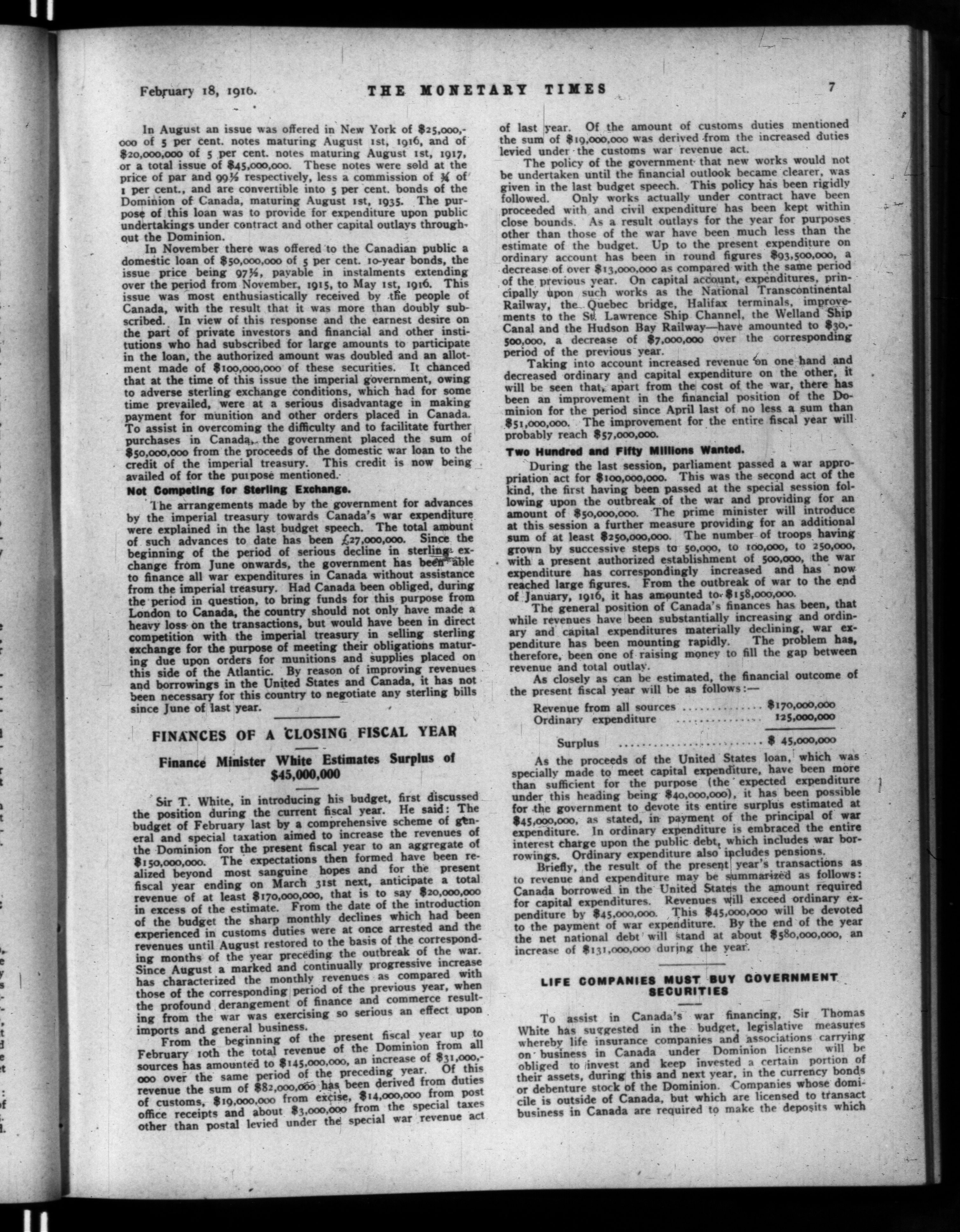 The monetary times, trade review and insurance chronicle : Volume 56, No. 7 (February 18, 1916)