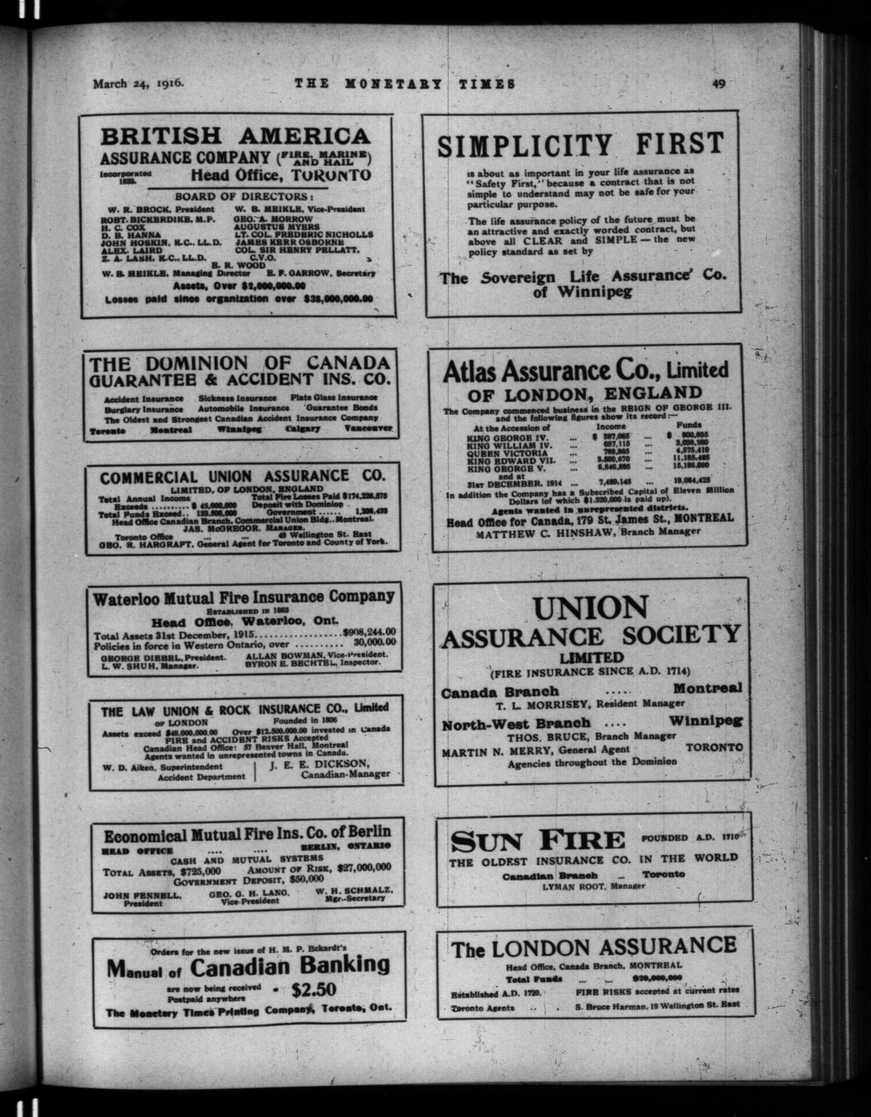 The monetary times, trade review and insurance chronicle : Volume 56, No. 12 (March 24, 1916)