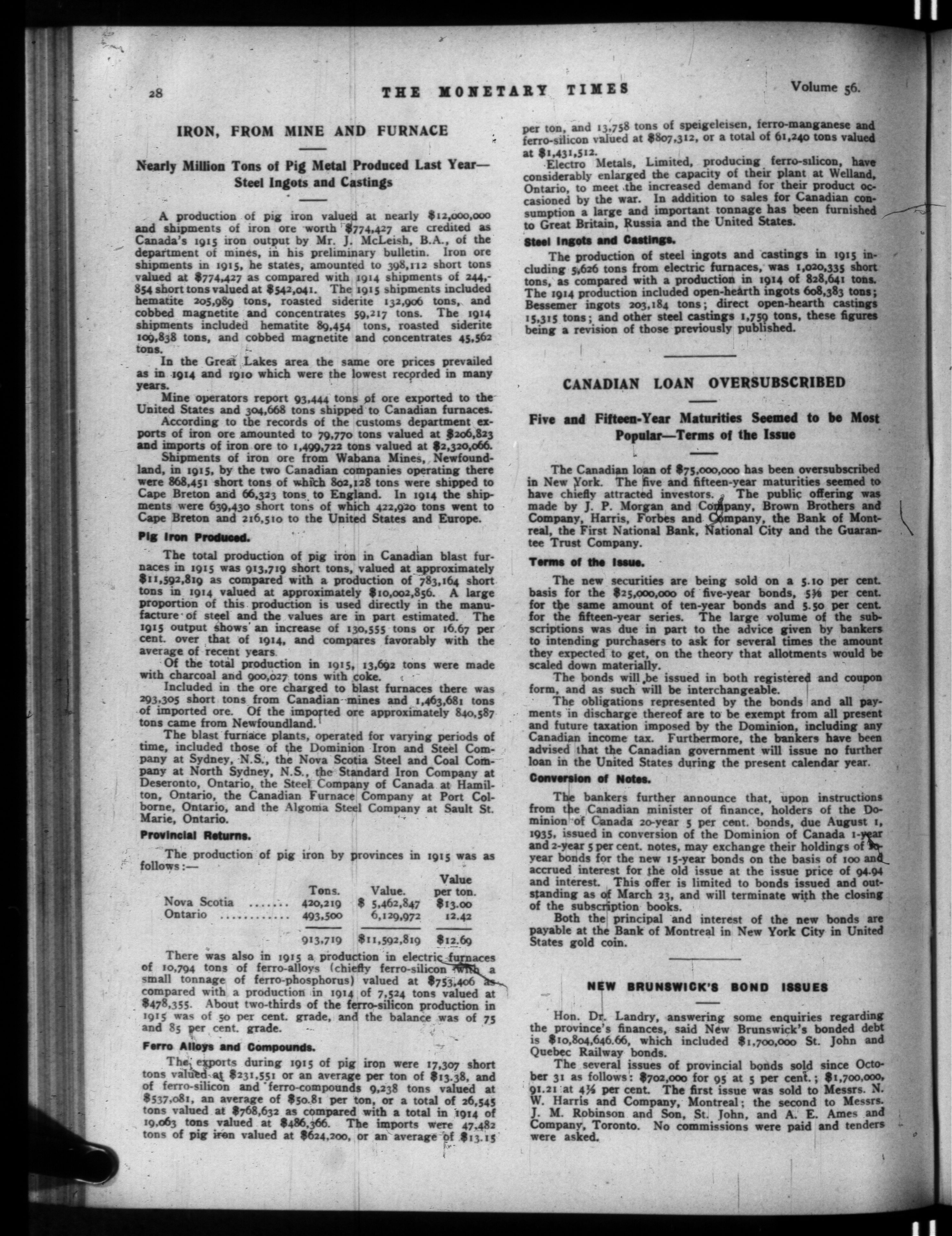 The monetary times, trade review and insurance chronicle : Volume 56, No. 13 (March 31, 1916)