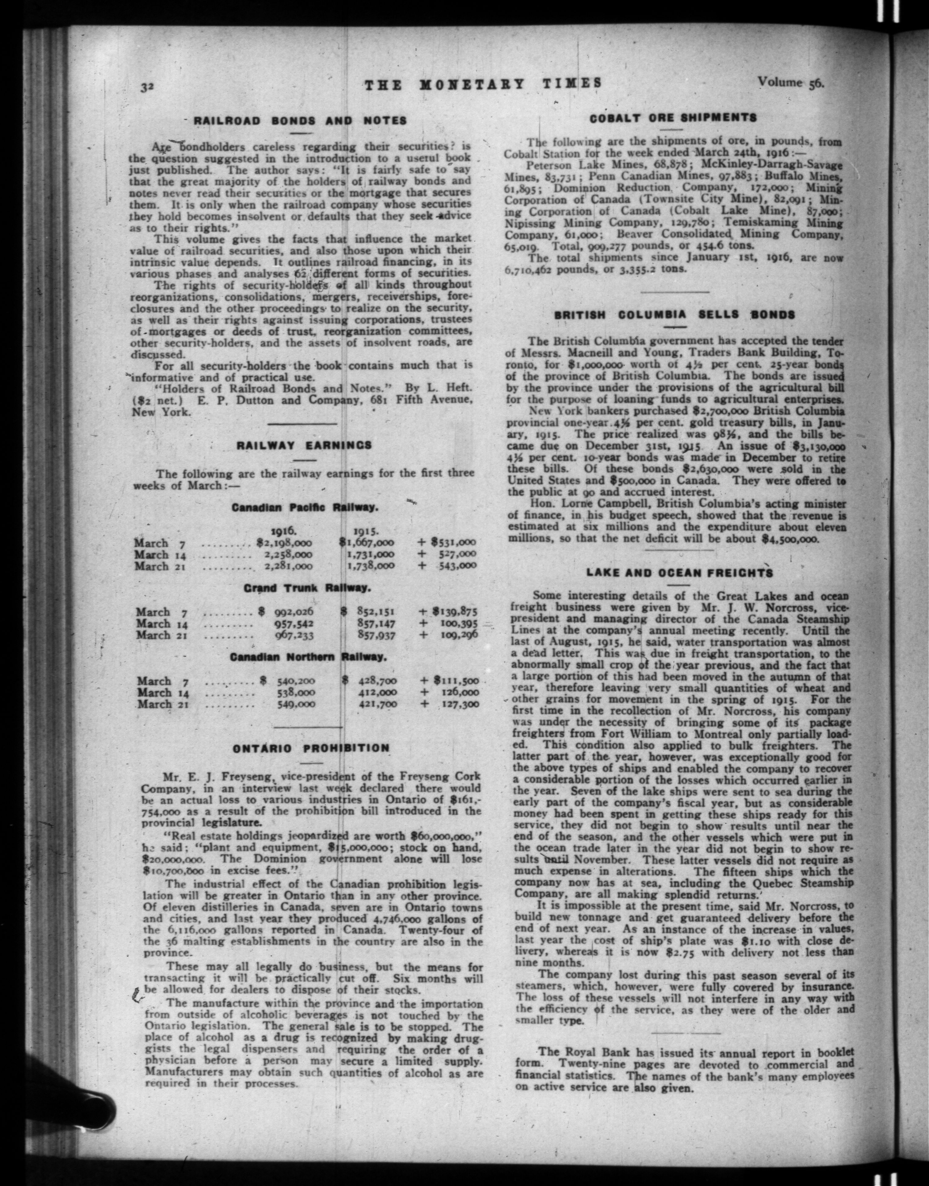 The monetary times, trade review and insurance chronicle : Volume 56, No. 13 (March 31, 1916)