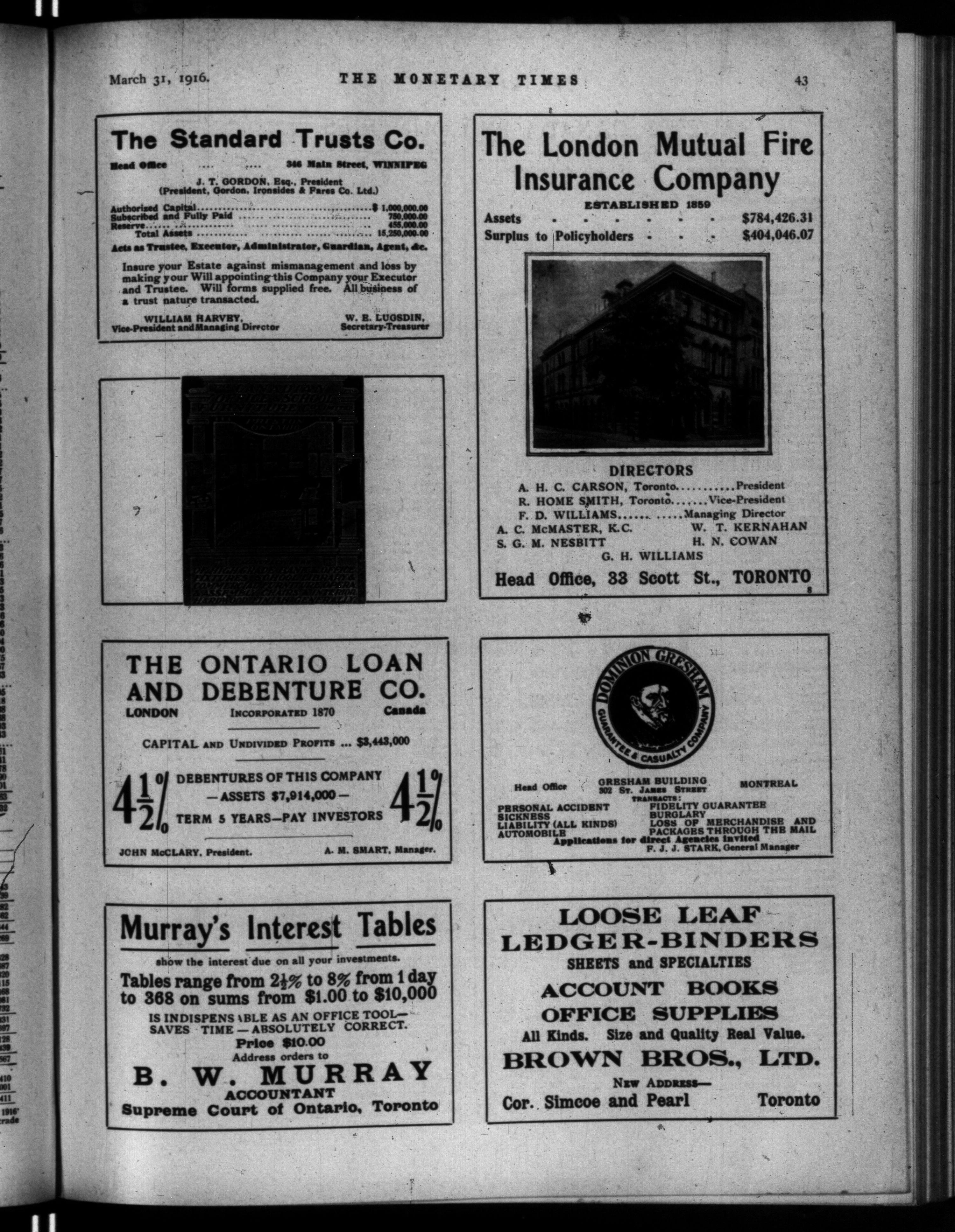 The monetary times, trade review and insurance chronicle : Volume 56, No. 13 (March 31, 1916)