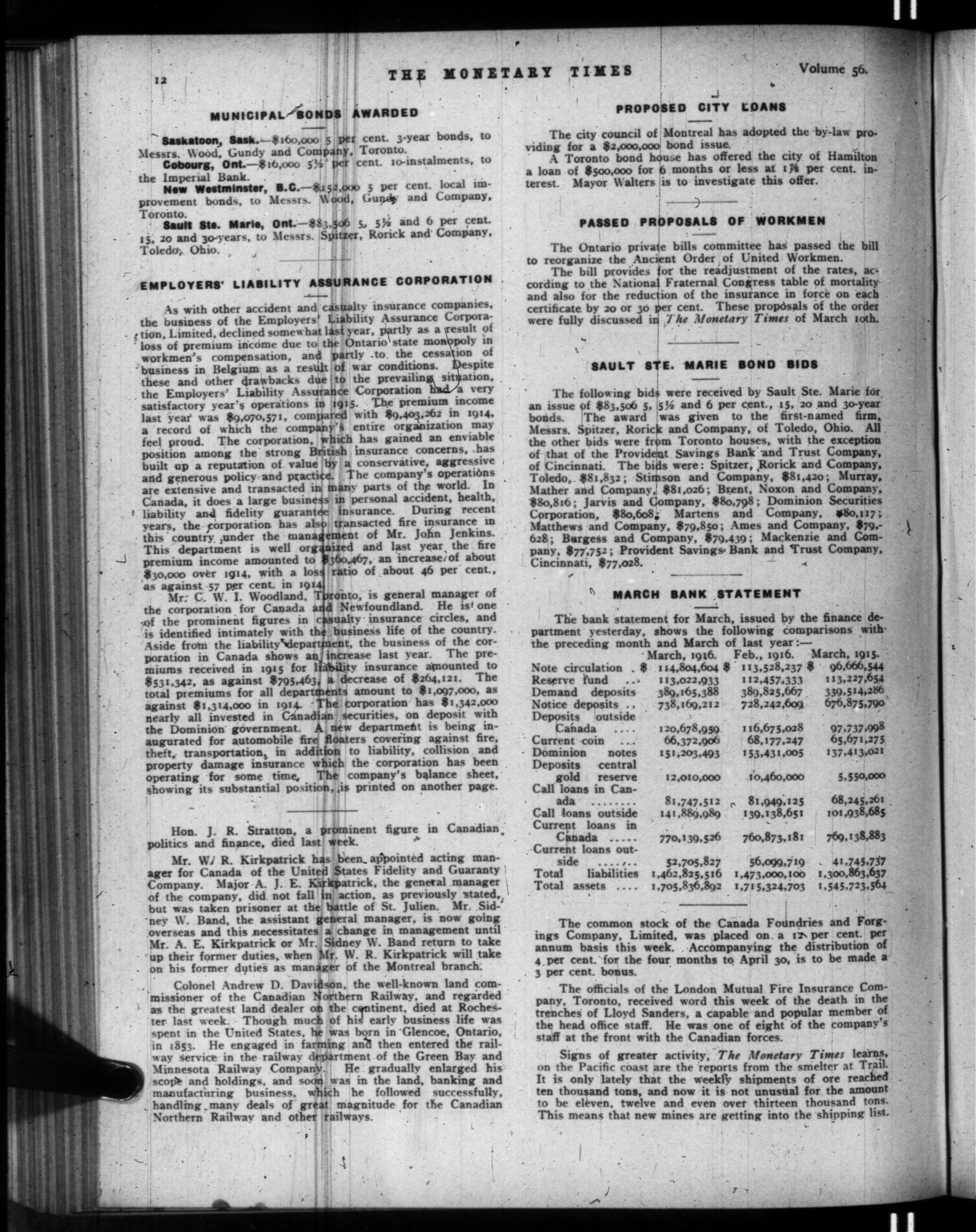 The monetary times, trade review and insurance chronicle : Volume 56, No. 17 (April 28, 1916)
