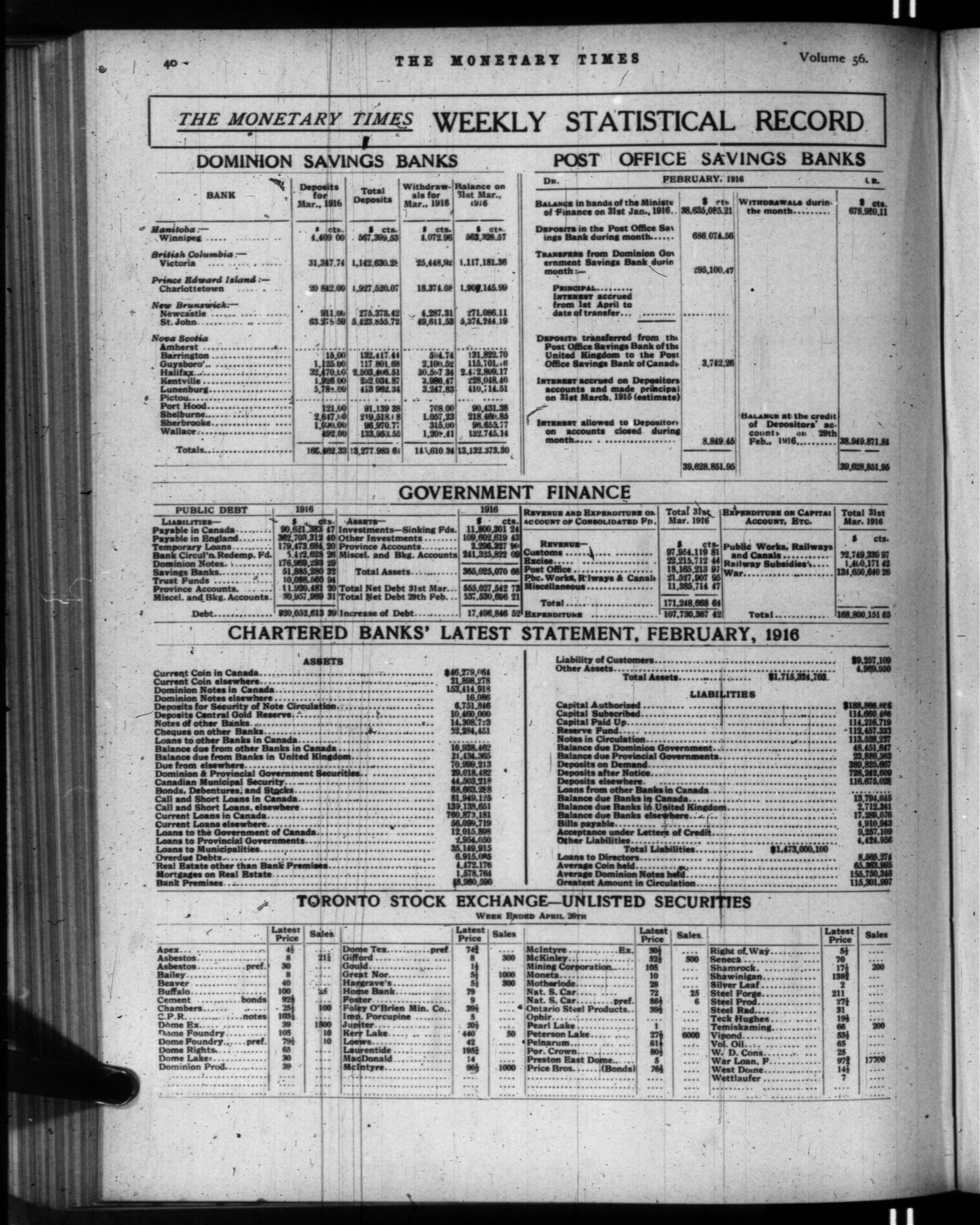 The monetary times, trade review and insurance chronicle : Volume 56, No. 17 (April 28, 1916)