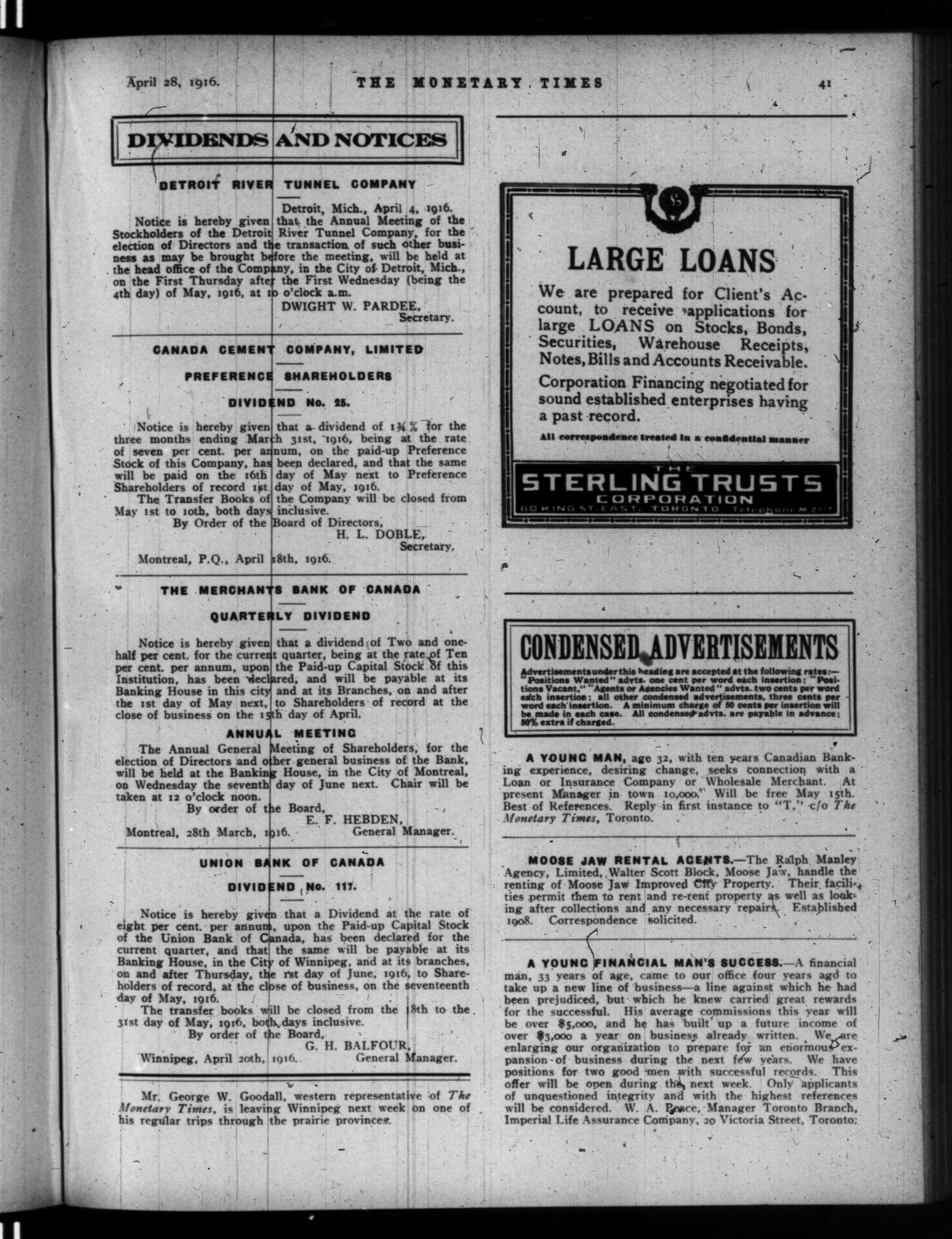 The monetary times, trade review and insurance chronicle : Volume 56, No. 17 (April 28, 1916)