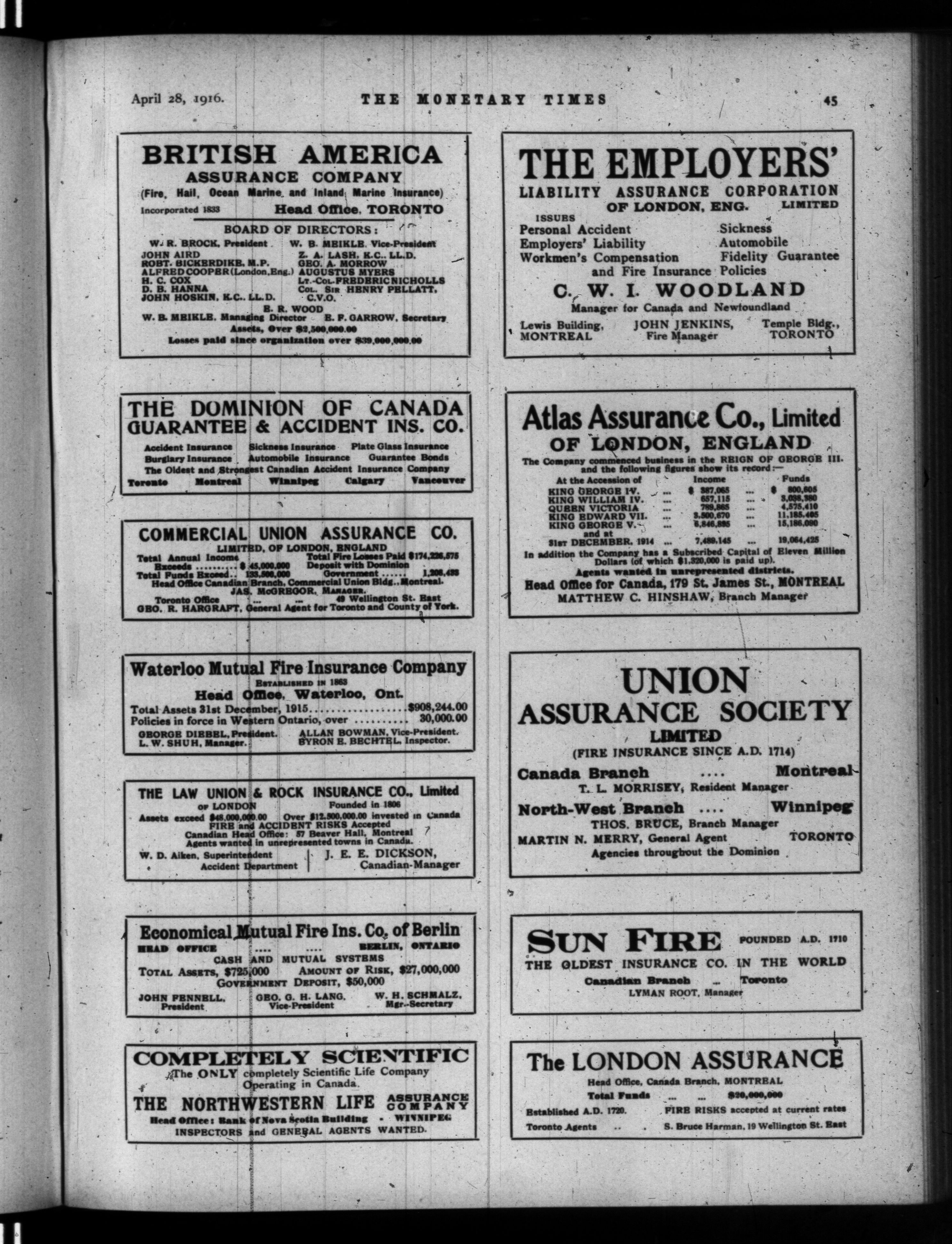 The monetary times, trade review and insurance chronicle : Volume 56, No. 17 (April 28, 1916)