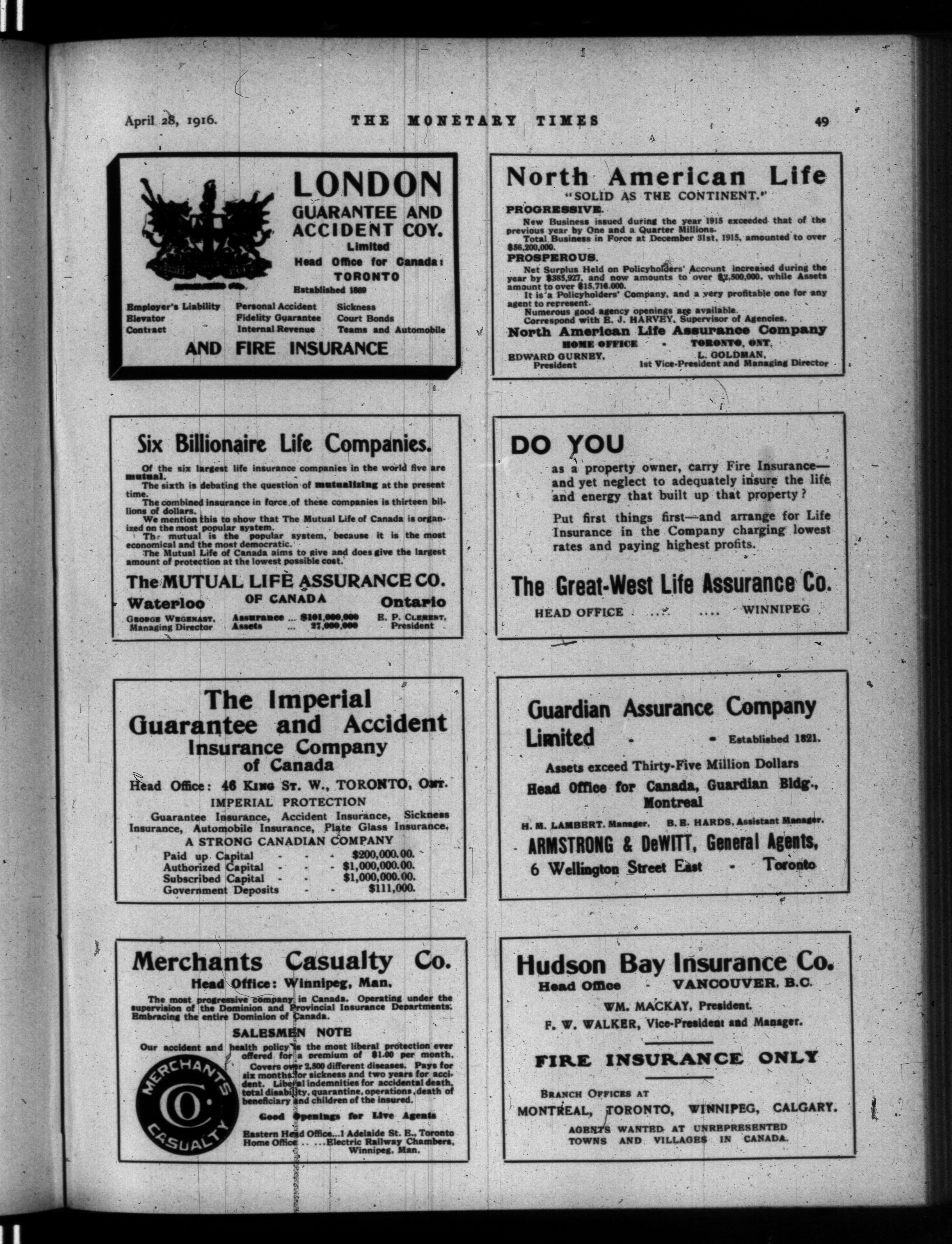 The monetary times, trade review and insurance chronicle : Volume 56, No. 17 (April 28, 1916)