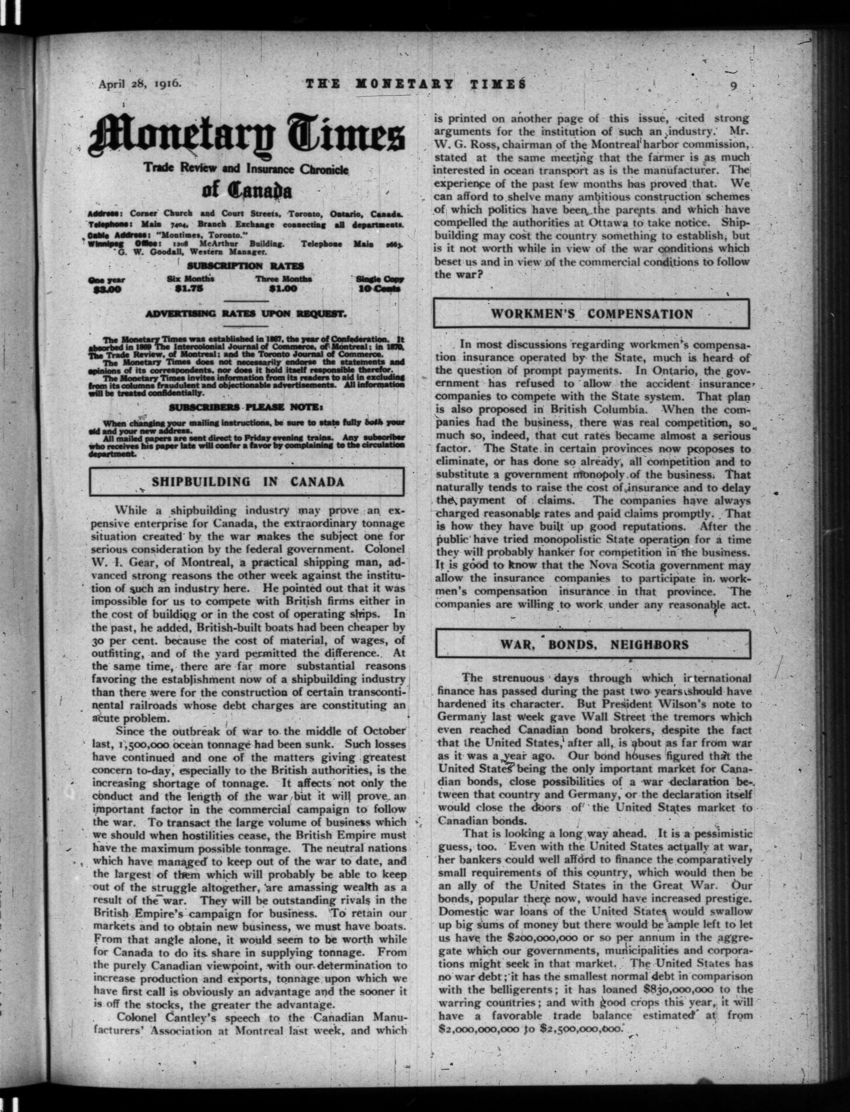 The monetary times, trade review and insurance chronicle : Volume 56, No. 17 (April 28, 1916)