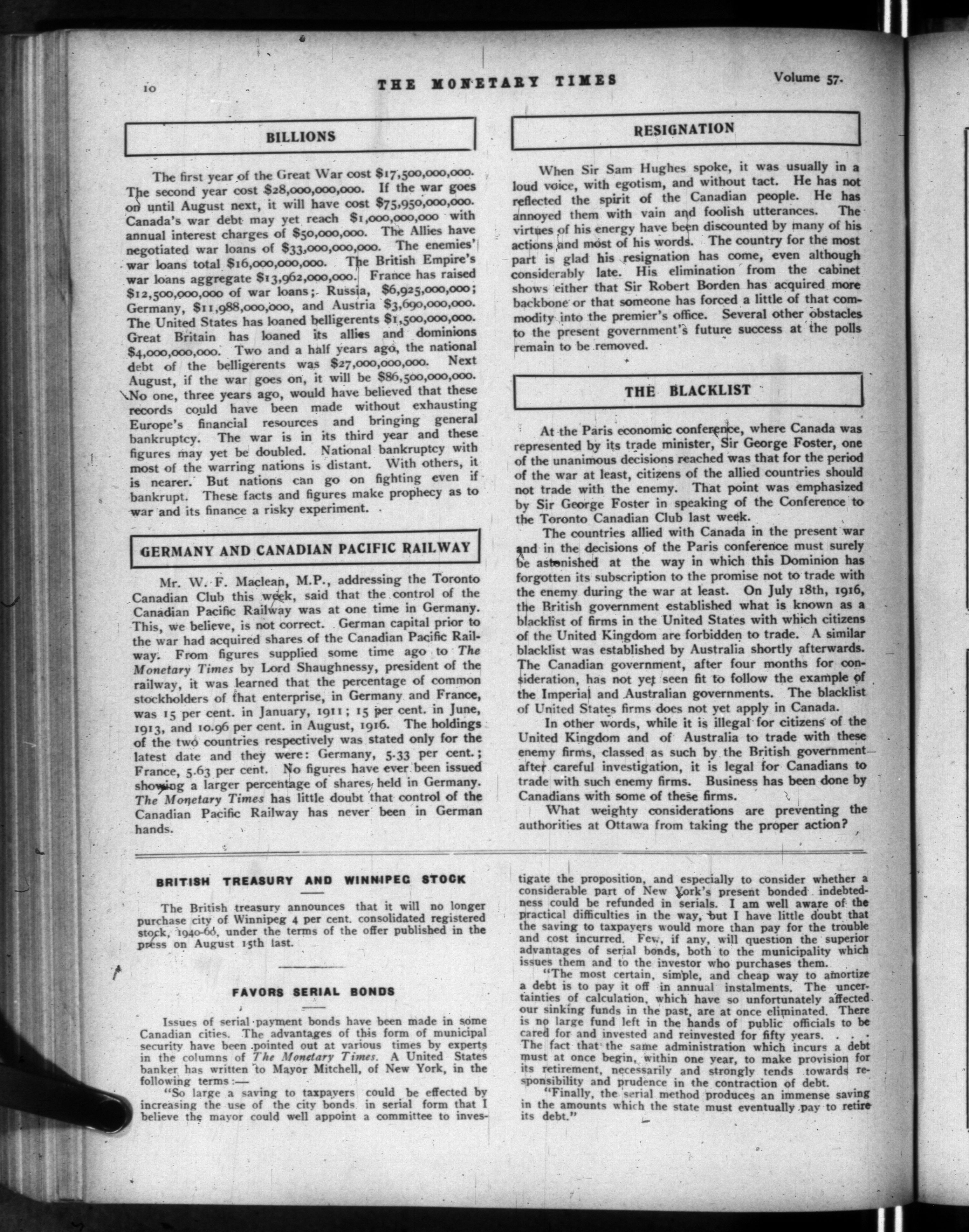 The monetary times, trade review and insurance chronicle : Volume 57, No. 20 (November 17, 1916)
