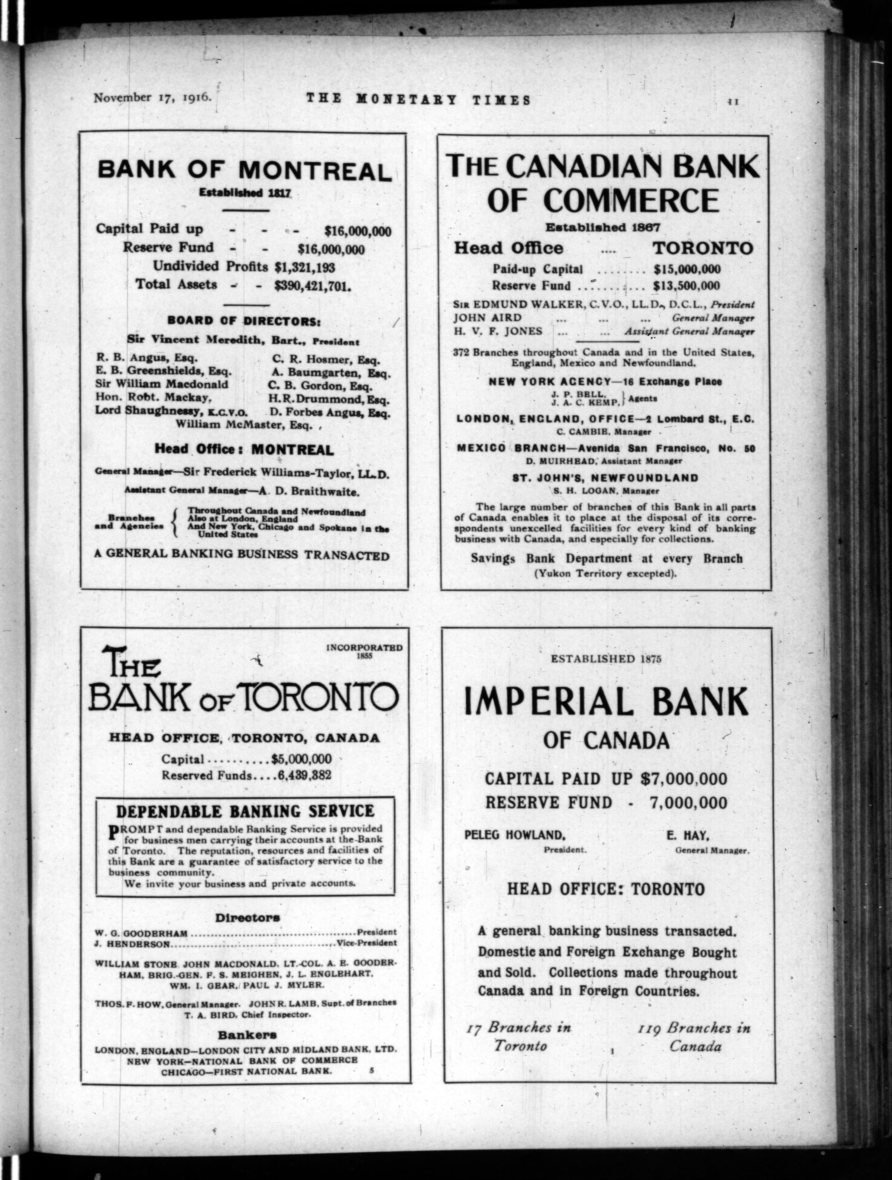 The monetary times, trade review and insurance chronicle : Volume 57, No. 20 (November 17, 1916)
