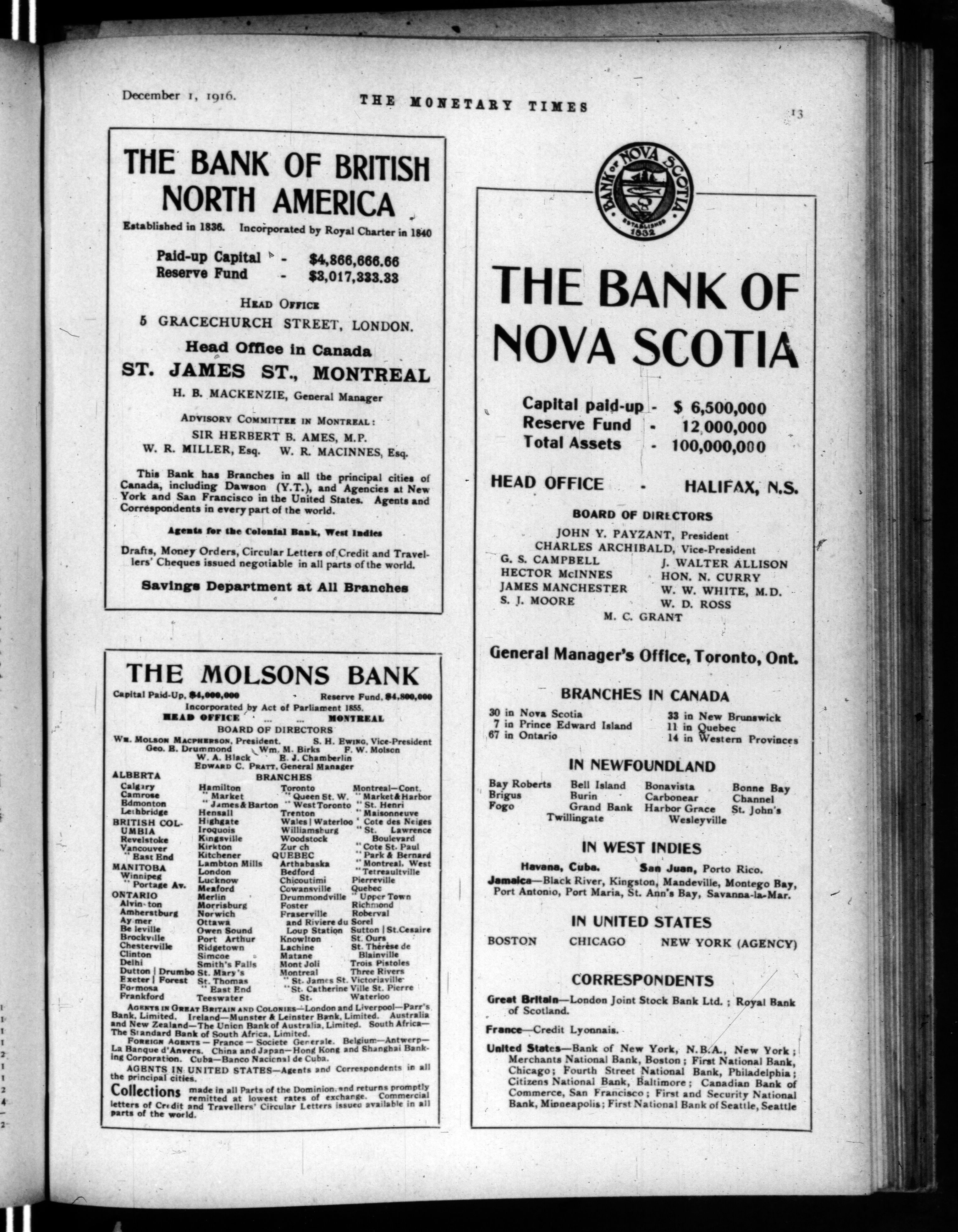 The monetary times, trade review and insurance chronicle : Volume 57, No. 22 (December 1, 1916)